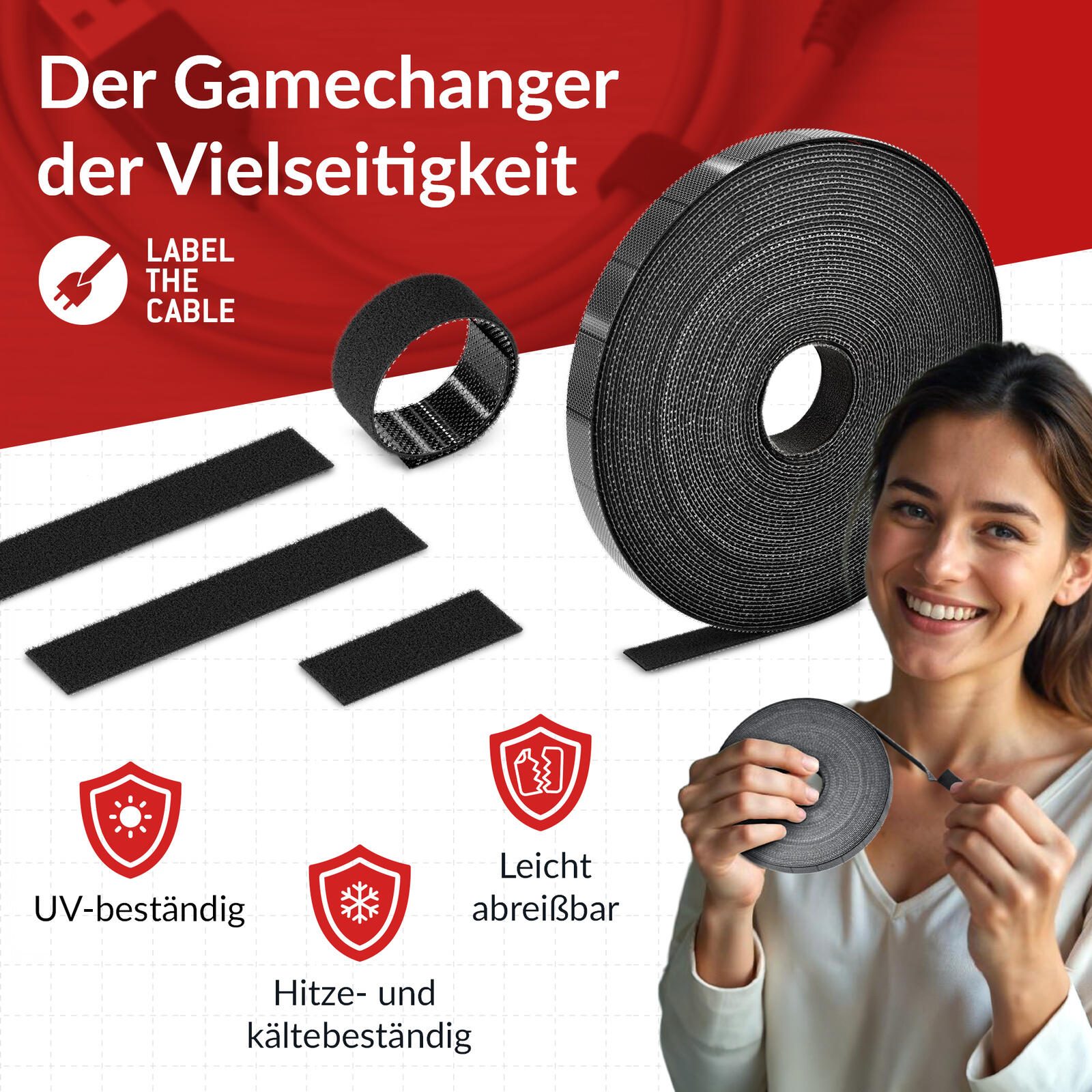 Die LABEL THE CABLE RIP STRAPS revolutionieren das Kabelmanagement mit praktischer Handhabung und vielseitigen Einsatzmöglichkeiten. Das doppelseitige Klettband (15 mm breit und 3 m oder 10 m lang) ist der perfekte Helfer für Ordnung im Büro, zu Hause, in der Werkstatt, beim Camping, im Garten, oder unterwegs - überall dort, wo Kabel, Werkzeuge, Ausrüstung, oder Pflanzen organisiert werden müssen.