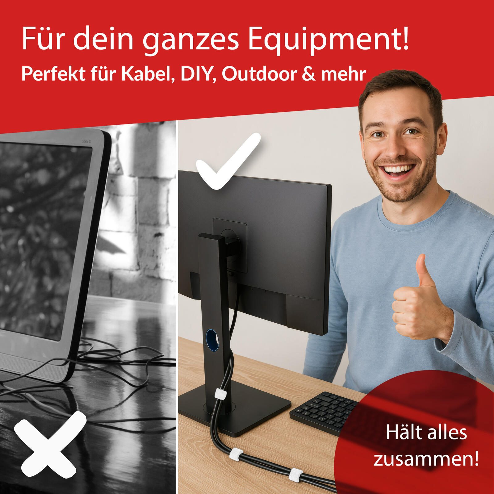 - Perfekt für Verlängerungskabel, Elektroinstallationen, Schreibtisch Kabelmanagement, Werkzeuge in der Werkstatt, Pflanzen im Garten, Ausrüstung beim Camping oder auf Veranstaltungen - organisiert und bündelt in jedem Bereich. In- u. Outdoor geeignet.