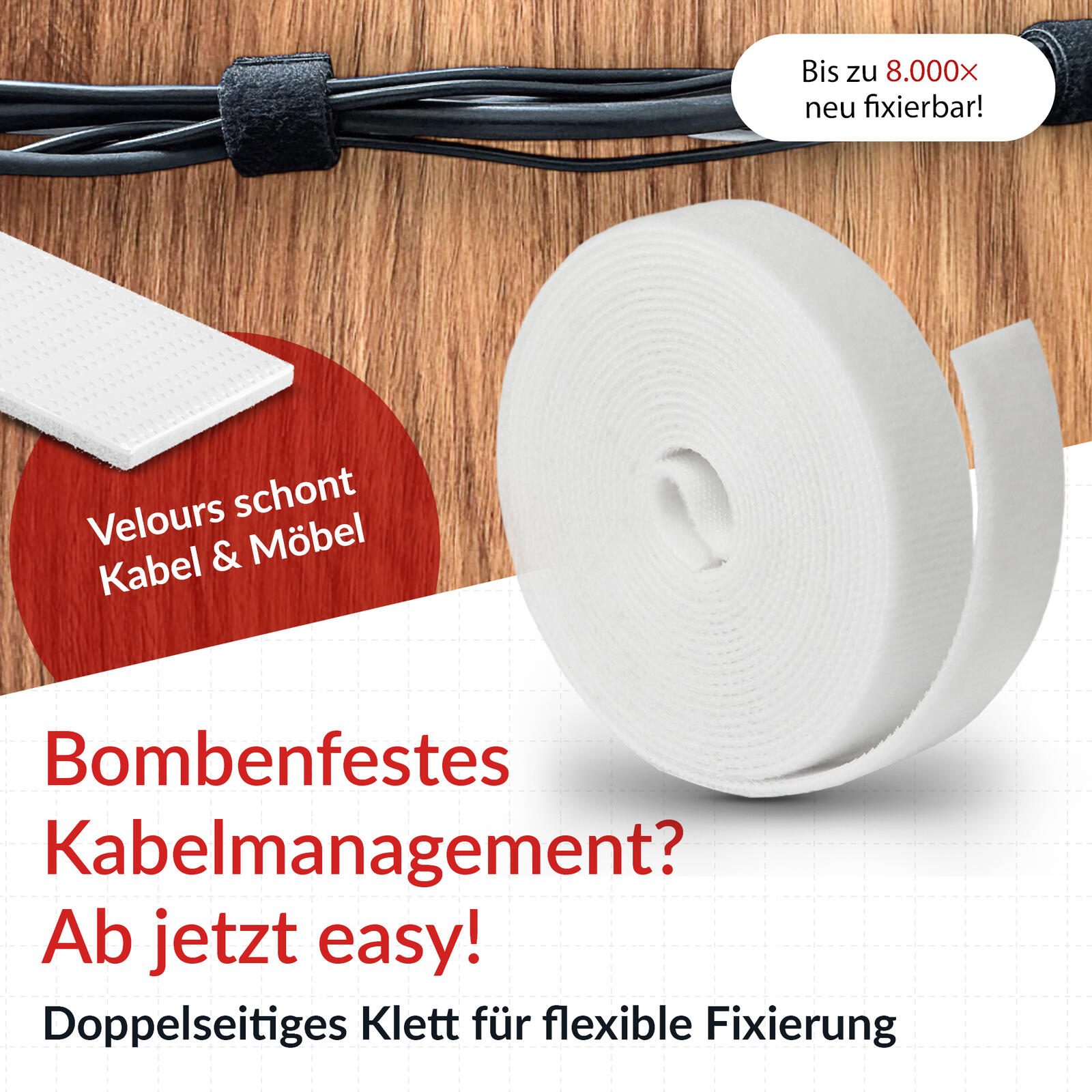 - STARKE KLETTHAFTUNG: Die Mikrohaken-Technologie sorgt für zuverlässigen Halt bei schweren Gegenständen. Kein Nachlassen auch nach häufigem Gebrauch. Optimal als Kabelbinder für Ihr Kabelmanagement, oder zum Bündeln und Fixieren aller anderen Gegenstände.