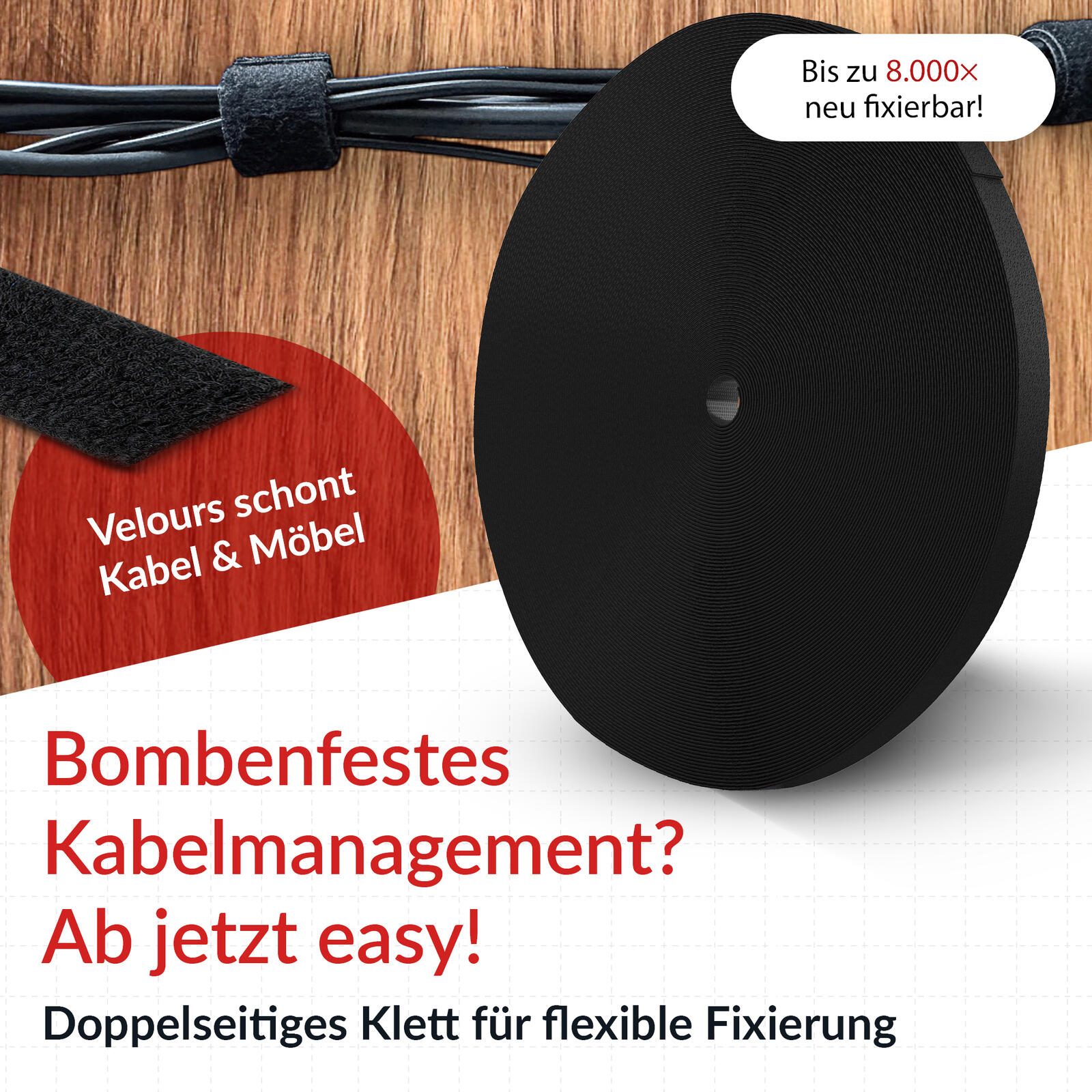- FLEXIBEL ANPASSBAR: 3 m, oder 25 m lange Klettbandrolle zum Zuschneiden individueller Längen. Perfekt für kleine und große Kabel und Gegenstände.