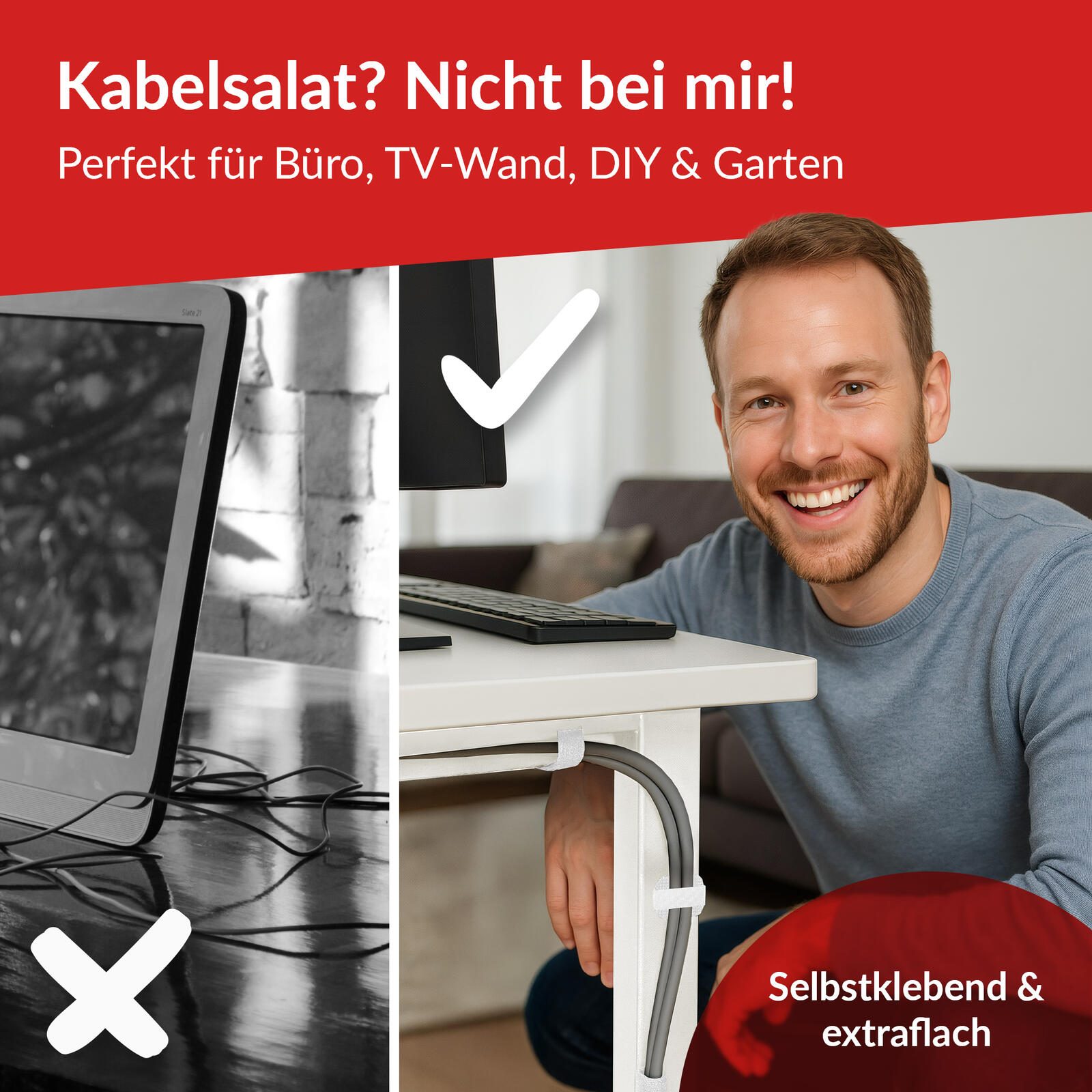 - Ordentliche Kabelführung an Wänden, Schreibtischen, Heimkino- und TV und überall wo Kabel befestigt und geführt werden müssen