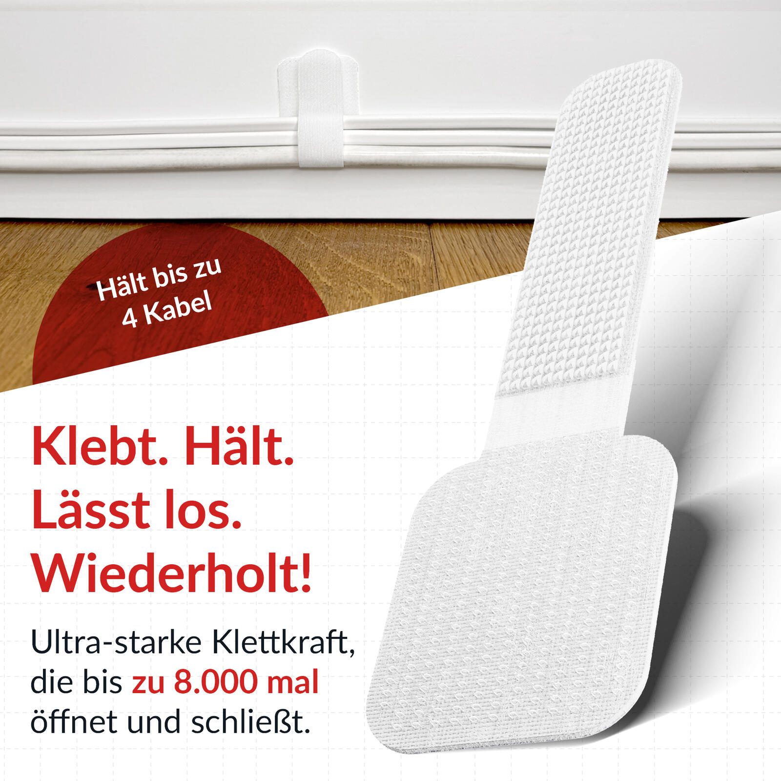 - WIEDERVERWENDBARER KLETTVERSCHLUSS: Praktischer Kabelhalter mit Klettverschluss für schnelles Öffnen und sicheres Schließen. Ideal zur Kabelführung auch bei höhenverstellbaren Schreibtischen oder häufig genutzten Elektronikgeräten.