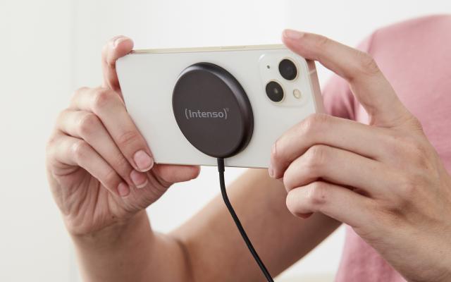 Keine Lust auf das Smartphone während des Ladens zu verzichten? Kein Problem! Dank des magnetischen, drahtlosen Schnellladegeräts Magnetic Wireless Charger MB1 und MW1 von Intenso kann Ihr Smartphone effizient und schnell (mit bis zu 15W), während der Nutzung geladen werden. Der Wireless Charger unterstützt die MagSafe Ladetechnologie von Apple, die seit dem iPhone 12 in den neuen iPhones verbaut ist. Der magnetische Ring verbindet sich mit dem im iPhone verbauten MagSafe Magnetring und sorgt dafür, dass das Ladegerät perfekt am Smartphone positioniert haftet.