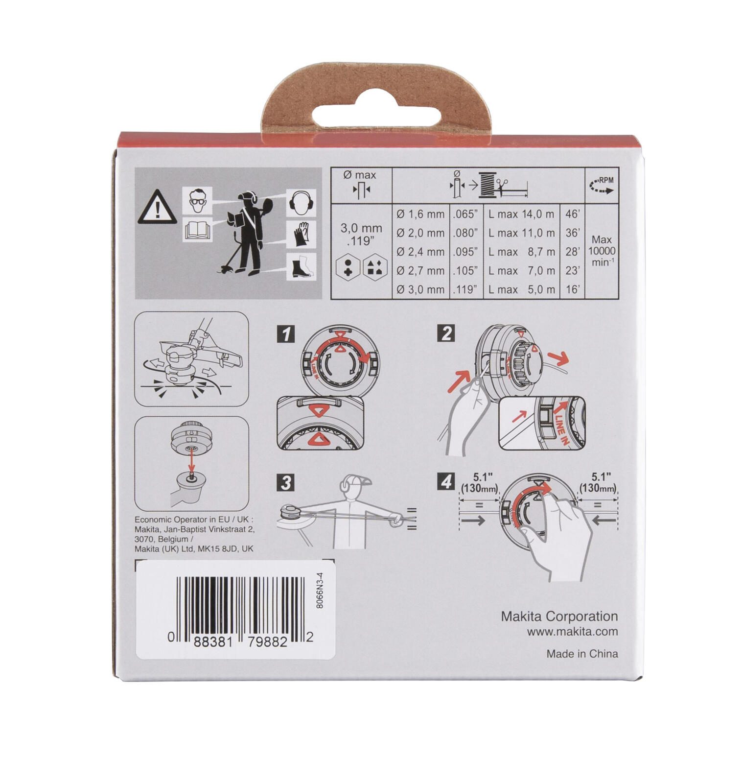 makita 2-Fadenkopf für Rasentrimmer Tap&Go 2.7 mm 4 m