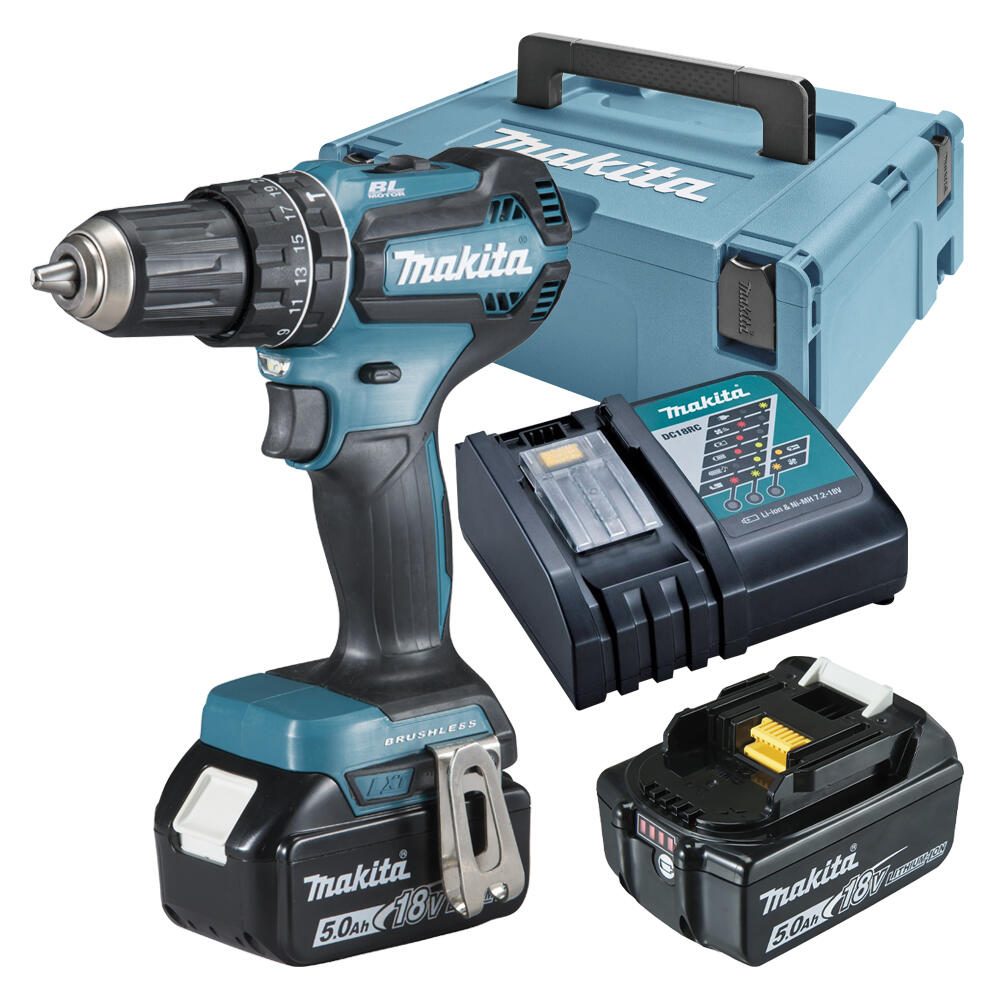 - Lieferung inkl.: 2x Akku BL1850B Li 18V 5,0 Ah, Schnellladegerät DC18RC, MAKPAC Gr.2, Schraube M4x12, Einhängebügel, PH/LS Doppelbit, Tiefziehteil für MAKPAC