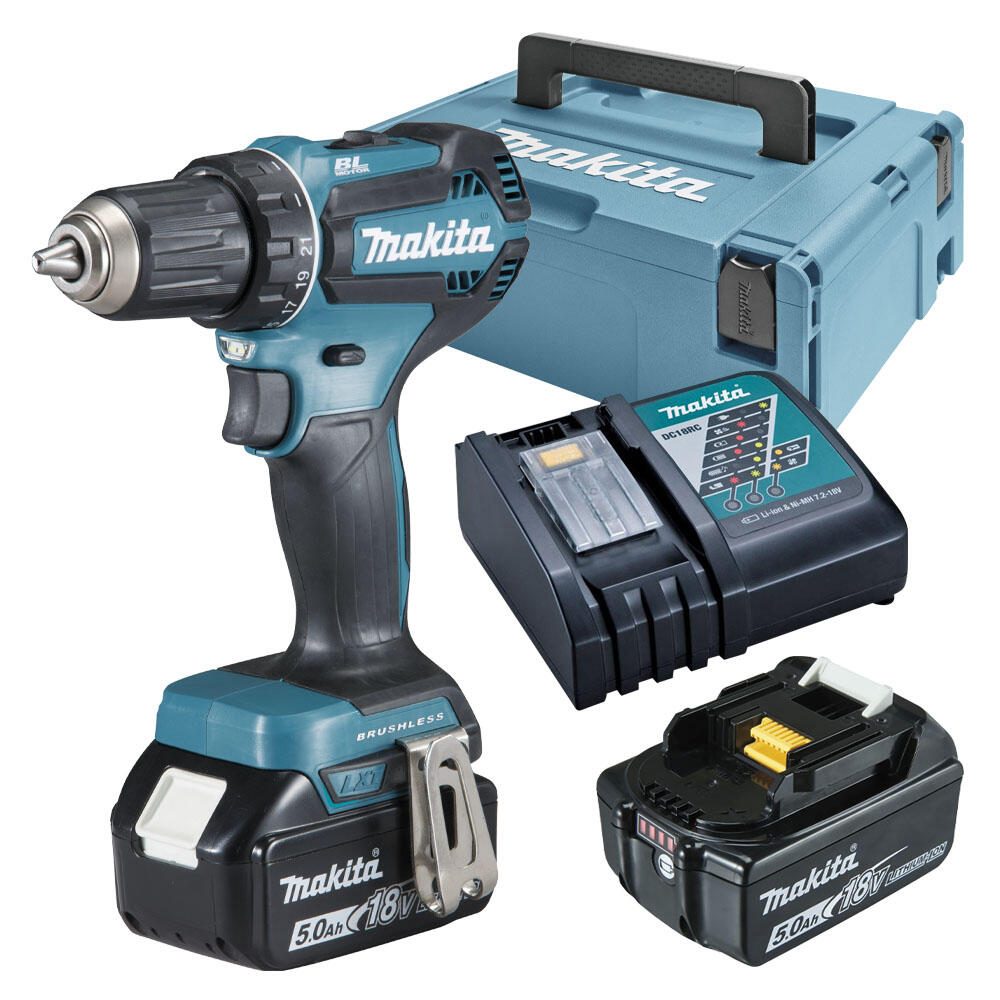 - Lieferung inkl.: 2x Akku BL1850B Li 18V 5,0 Ah, Schnellladegerät DC18RC, MAKPAC Gr.2, Schraube M4x12, Einhängebügel, PH/LS Doppelbit