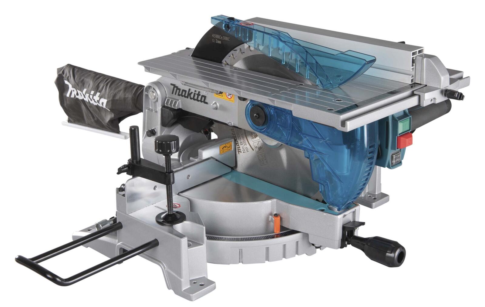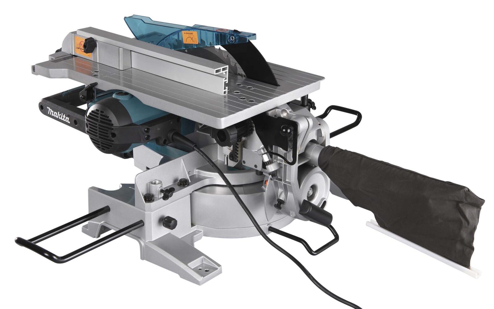 - Kombinierte Maschine nutzbar als Kapp- und Gehrungssäge oder als Tischkreissäge, mit Sicherheitsschalter gegen unbeabsichtigtes Einschalten, Sanftanlauf und Motorbremse