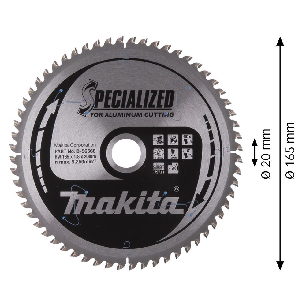 Das makita Kreissägeblatt B-56568 zeichnet sich durch seine präzise Verarbeitung und die speziell entwickelte Zahnform aus, die für optimale Schnittergebnisse sorgt. Mit einem Durchmesser von 165 mm und 60 Zähnen ist dieses Sägeblatt ideal auf die Bearbeitung von Aluminium abgestimmt. Die Bohrung von 20 mm gewährleistet eine einfache und sichere Montage auf kompatiblen Maschinen.