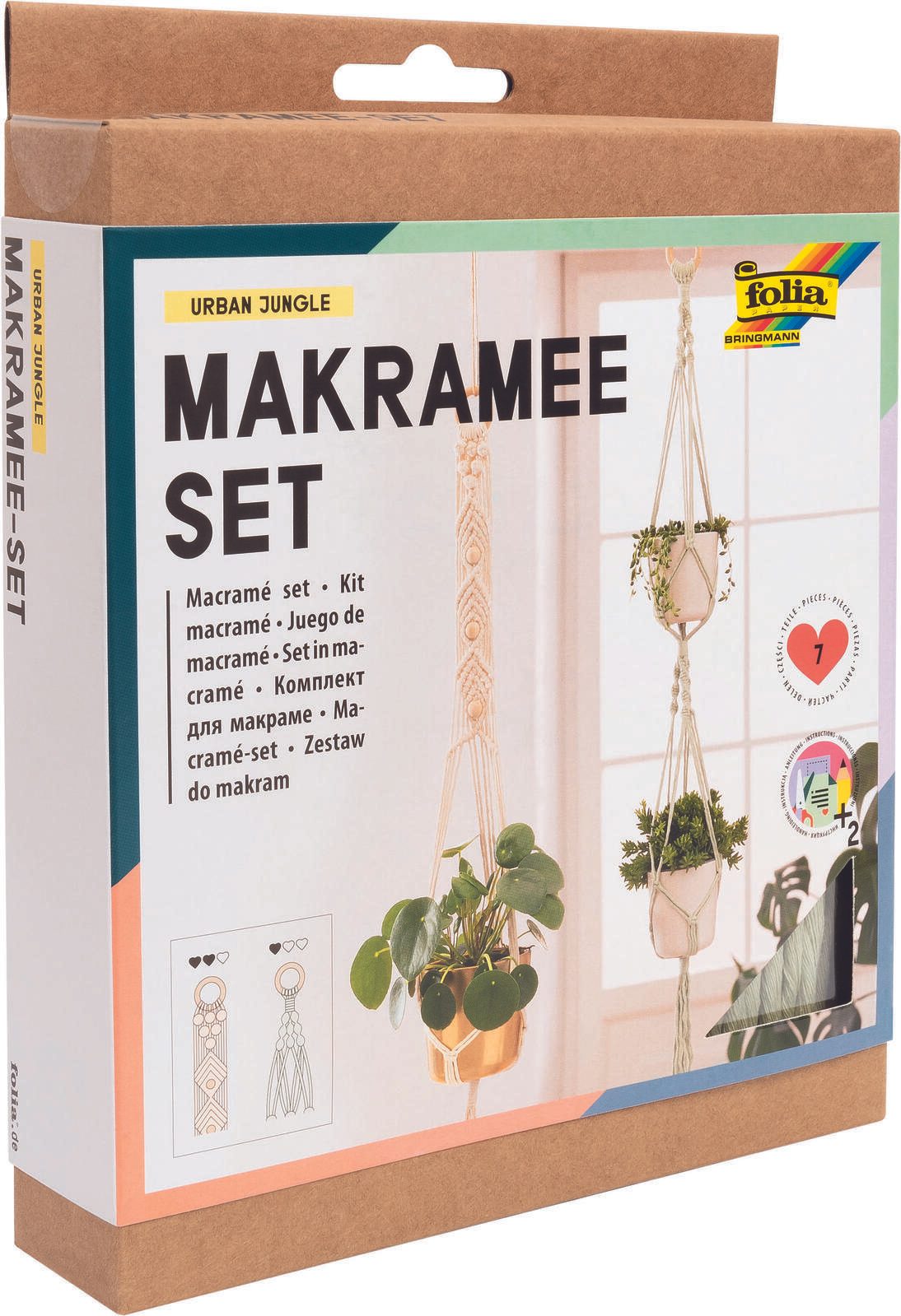 Das folia Makramee-Set natur, rosé ist die perfekte Wahl für kreative Köpfe, die ihrem Wohnraum einen Hauch von Boho-Style verleihen möchten. Dieses Set umfasst alles, was du benötigst, um zwei wunderschöne Blumenampeln zu gestalten. Die harmonische Farbkombination aus natur und rosé sorgt für eine warme und einladende Atmosphäre, die sich nahtlos in jede Einrichtung einfügt. Mit dem folia Makramee-Set kannst du deiner Kreativität freien Lauf lassen. Die hochwertigen Materialien und die durchdachte Ausführung garantieren, dass deine Blumenampeln nicht nur schön aussehen, sondern auch stabil und langlebig sind. Die Verwendung von Makramee-Techniken ermöglicht es dir, einzigartige Designs zu kreieren, die deinem persönlichen Stil Ausdruck verleihen. Die Anleitung, die im Set enthalten ist, führt dich Schritt für Schritt durch den Herstellungsprozess, sodass du auch als Anfänger schnell zu einem beeindruckenden Ergebnis gelangst. Zudem fördert das Arbeiten mit den Händen nicht nur die Kreativität, sondern auch die Entspannung und den Stressabbau. Die Kombination aus natur und rosé bringt nicht nur Farbe in dein Zuhause, sondern sorgt auch dafür, dass deine Pflanzen stilvoll zur Geltung kommen. Ob im Wohnzimmer, Schlafzimmer oder im Eingangsbereich – die selbstgemachten Blumenampeln sind ein echter Hingucker und setzen deine Pflanzen perfekt in Szene. Das folia Makramee-Set URBAN JUNGLE ist die ideale Wahl für alle, die sich für DIY-Projekte begeistern und ihren Wohnraum individuell gestalten möchten. Lass deiner Fantasie freien Lauf und verwandle dein Zuhause in eine grüne Oase mit einem einzigartigen, handgefertigten Flair.Technische Daten
