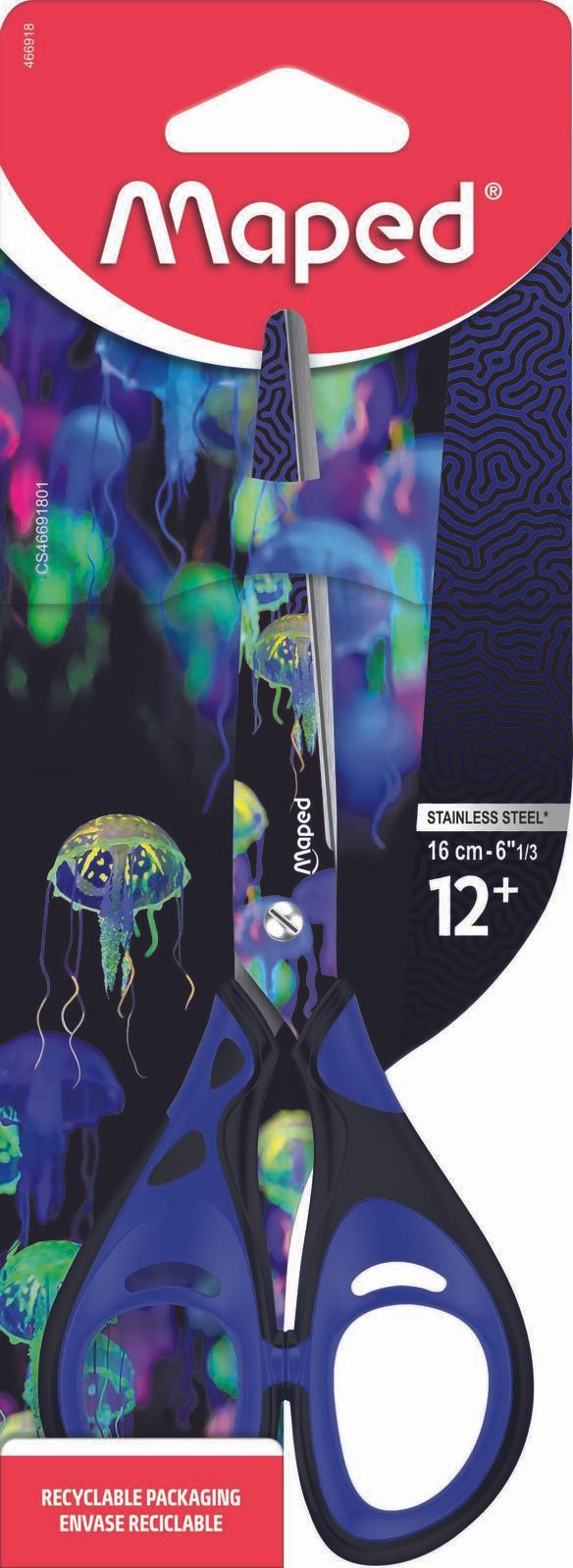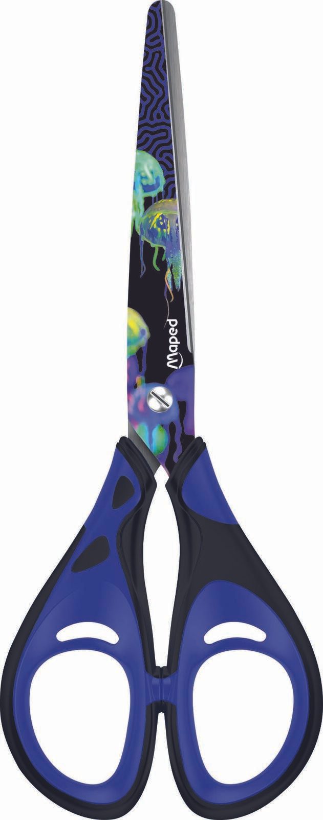 Die maped Kinderschere mit einer Länge von 16 cm ist das ideale Werkzeug für kreative Köpfe und kleine Bastelfreunde. Mit ihrem ansprechenden Design in blau/schwarz und der runden Form bietet sie nicht nur eine sichere Handhabung, sondern auch eine ansprechende Optik, die Kinder begeistert. Die Schere gehört zur Serie „Deepsea Paradise“ und ist speziell für das Schneiden von Papier geeignet, was sie zu einem unverzichtbaren Utensil für Schule und Freizeit macht. Der Griff der Schere besteht aus hochwertigem Kunststoff, der nicht nur leicht, sondern auch ergonomisch geformt ist. Dies sorgt dafür, dass die Schere angenehm in der Hand liegt und ein müheloses Schneiden ermöglicht. Die runde Spitze der Schere bietet zusätzliche Sicherheit, sodass auch jüngere Kinder bedenkenlos mit ihr arbeiten können. Egal, ob beim Basteln von Kunstprojekten oder beim Schneiden von Bildern aus Zeitschriften, die maped Kinderschere unterstützt die Kreativität und fördert die Feinmotorik. Die maped Kinderschere ist nicht nur funktional, sondern auch ein langlebiges Produkt, das den Anforderungen des täglichen Gebrauchs standhält. Sie ist perfekt für den Einsatz in Schulen, Kindergärten oder zu Hause geeignet und wird schnell zum Lieblingswerkzeug deines Kindes. Mit dieser Schere wird das Schneiden zum Kinderspiel und macht das kreative Arbeiten noch mehr Spaß.Technische Daten