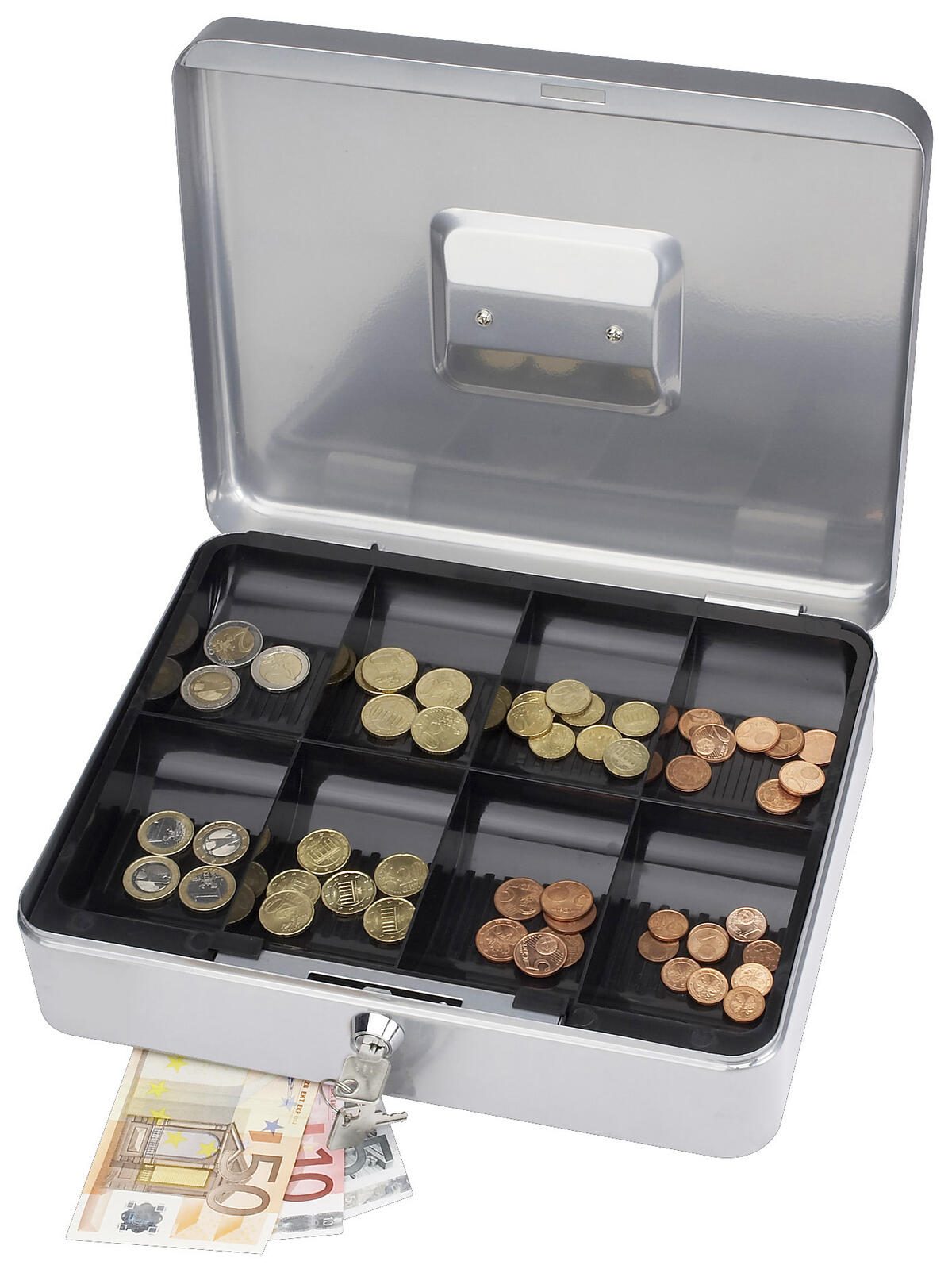 Dank ihres eleganten silbernen Farbtons fügt sich diese Geldkassette harmonisch in jeden Raum ein und strahlt gleichzeitig Eleganz aus. Der praktische Tragegriff ermöglicht dir ein bequemes Tragen der Kassette, sodass du sie bei Bedarf einfach transportieren kannst. Hergestellt von MAUL, einem renommierten Unternehmen, das für seine qualitativ hochwertigen Produkte bekannt ist, kannst du dich auf die Langlebigkeit und Zuverlässigkeit dieser Geldkassette verlassen.