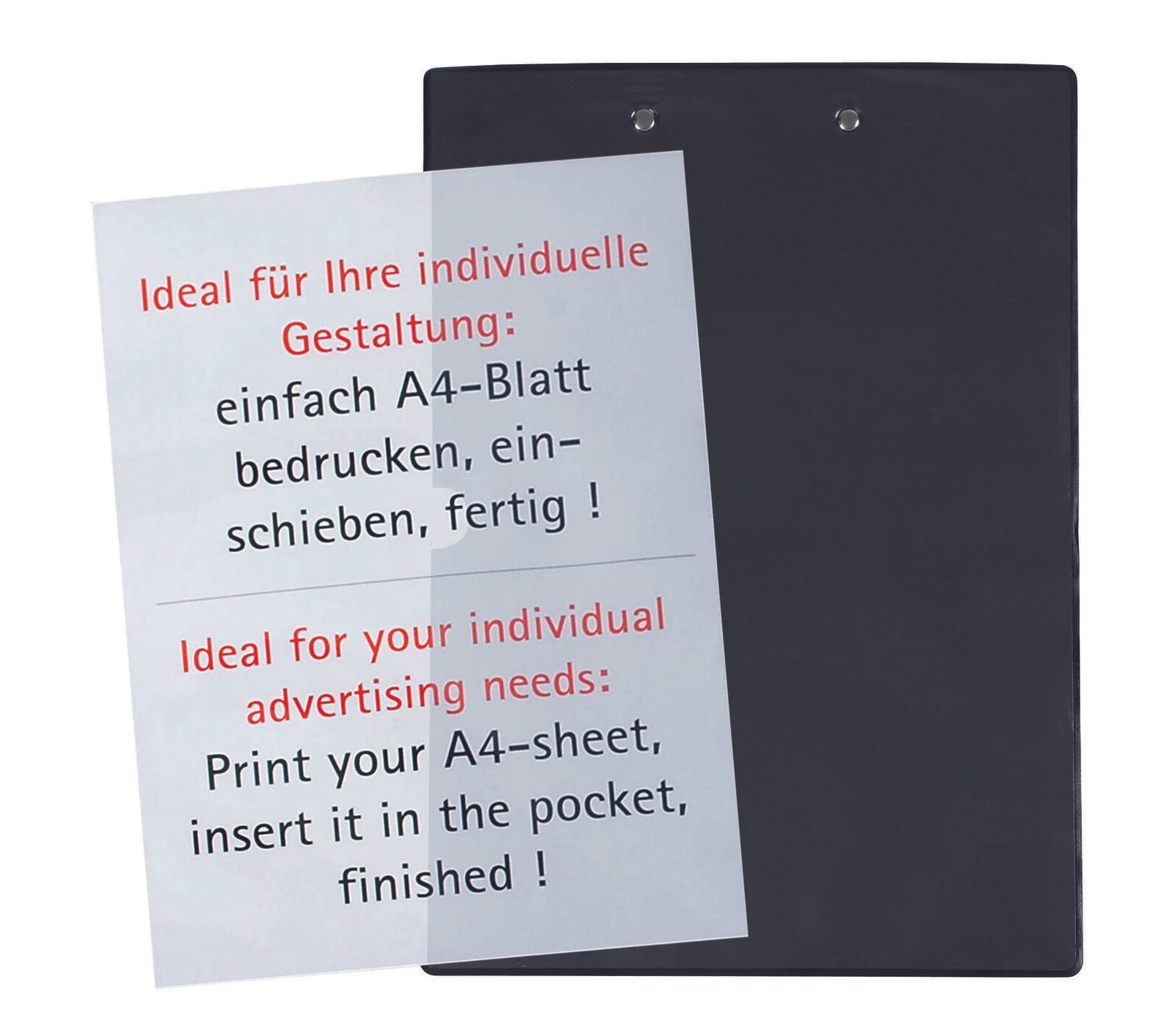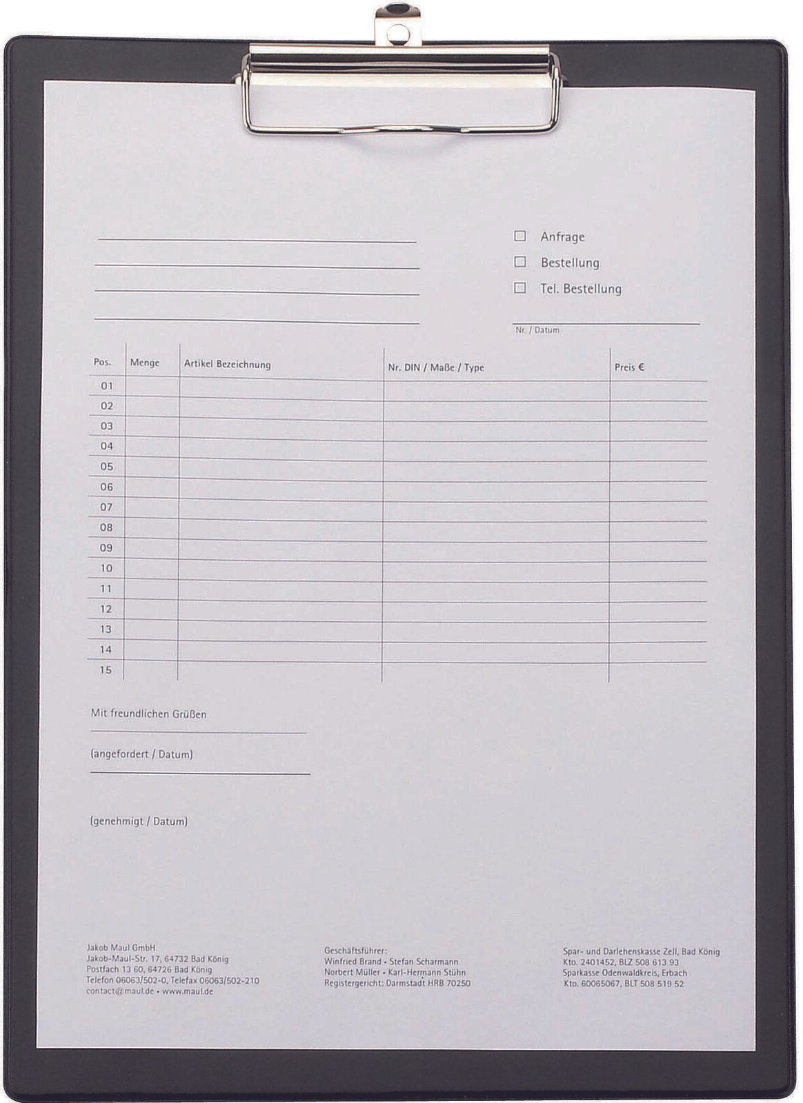 Das MAUL Klemmbrett DIN A4 in elegantem Schwarz ist die ideale Lösung für alle, die Wert auf Funktionalität und Stil legen. Mit seinen kompakten Maßen von 23,1 x 34,6 cm passt es perfekt in jede Aktentasche oder jeden Rucksack und ist somit der ideale Begleiter für unterwegs. Das Klemmbrett bietet Platz für Dokumente im Format DIN A4 und ist aus hochwertigem Karton mit einem strapazierfähigen Folienüberzug gefertigt, der nicht nur für eine ansprechende Optik sorgt, sondern auch die Langlebigkeit des Produkts erhöht. Die Klemme aus hochwertigem Metall in Nickel-Optik befindet sich an der kurzen Seite des Klemmbretts und ermöglicht ein einfaches und sicheres Festhalten von bis zu 8,0 mm dicken Unterlagen. So kannst du sicher sein, dass deine Dokumente stets an Ort und Stelle bleiben, egal ob im Büro, in der Schule oder bei Präsentationen. Das schlichte Design und die klassische Farbgebung machen das Klemmbrett zu einem zeitlosen Accessoire, das in jeder Umgebung gut aussieht. Darüber hinaus ist das MAUL Klemmbrett nicht nur funktional, sondern auch umweltfreundlich, da es aus nachhaltigen Materialien hergestellt wird. Mit diesem Klemmbrett erhältst du ein durchdachtes Produkt, das dir hilft, deine Unterlagen organisiert und griffbereit zu halten. Egal, ob du Notizen machst, Dokumente präsentierst oder einfach nur wichtige Informationen festhältst, das MAUL Klemmbrett DIN A4 schwarz ist die perfekte Wahl für jeden Anlass.Technische Daten