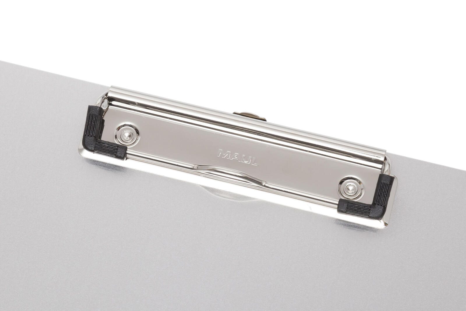 Das MAUL Klemmbrett DIN A4 in silber vereint Funktionalität und elegantes Design. Mit den Maßen von 23,0 x 31,9 cm passt es perfekt für Dokumente im DIN A4 Format und bietet dir eine praktische Lösung für deine Schreibbedürfnisse. Hergestellt aus hochwertigem Aluminium, ist dieses Klemmbrett nicht nur leicht, sondern auch äußerst langlebig. Die silberne Oberfläche verleiht dem Klemmbrett eine moderne und ansprechende Optik, die sich sowohl im Büro als auch in kreativen Umgebungen sehen lassen kann. Der Clip aus Metall, der an der kurzen Seite des Klemmbretts angebracht ist, sorgt für eine sichere und zuverlässige Befestigung deiner Unterlagen. Mit einem Fassungsvermögen von bis zu 8,0 mm kannst du problemlos mehrere Blätter gleichzeitig halten, ohne dass sie verrutschen oder herausfallen. Ob für Meetings, Präsentationen oder den täglichen Gebrauch – das MAUL Klemmbrett ist ein unverzichtbares Hilfsmittel, das dir hilft, deine Notizen und Dokumente stets im Griff zu haben. Die Kombination aus Funktionalität und stilvollem Design macht es zu einer idealen Wahl für Studenten, Berufstätige und Kreative. Vertraue auf die Qualität von MAUL und genieße die Vorteile dieses praktischen Klemmbretts, das dir in jeder Situation eine handliche Unterstützung bietet.Technische Daten