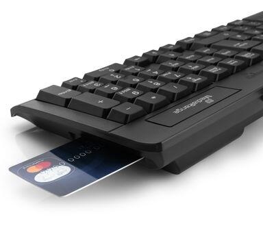 MediaRange kabelgebundene Tastatur mit Chip-Karten Terminal, QWERTZ (DE/AT) T1, Vollformat mit Ziffernblock & Funktionstasten, 1.5m Kabel, Schwarz