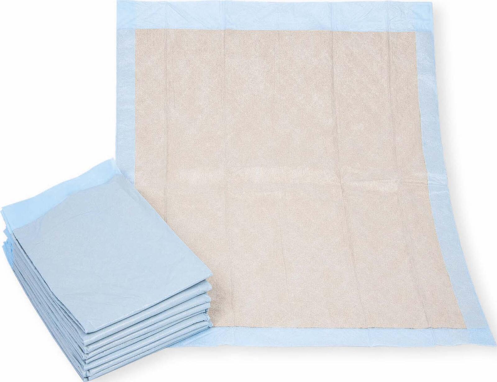 Die Meditrade® Einweg-Betteinlagen sind speziell für den einmaligen Gebrauch konzipiert und bieten durch ihre 6-lagige Verarbeitung eine hohe Saugfähigkeit. Sie bestehen aus Zellstoff, einem weichen und zugleich saugfähigen Material, das für eine zuverlässige Aufnahme von Flüssigkeiten sorgt. Die blaue Färbung der Einlagen erleichtert die optische Kontrolle während der Anwendung.