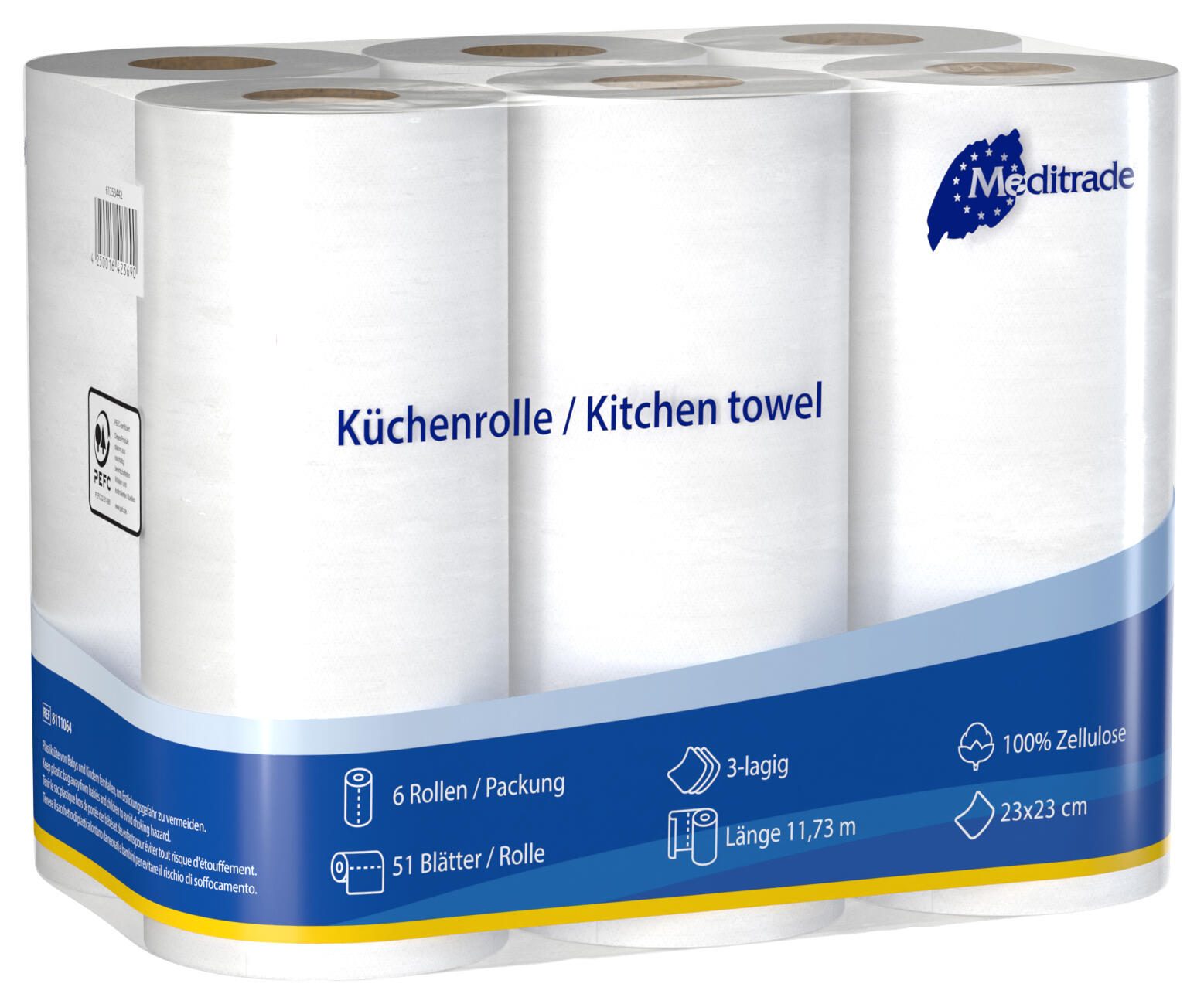 Meditrade® Küchenrollen, 3-lagig 1 Pack = 6 Rollen