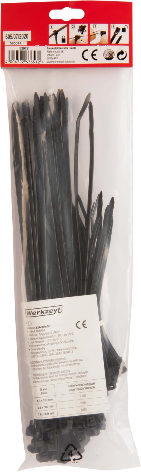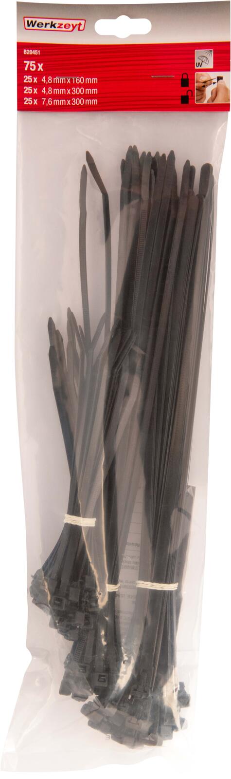 Das Mehrweg-Kabelbinderset in elegantem Schwarz bietet dir eine praktische und vielseitige Lösung zur Organisation deiner Kabel und Leitungen. Mit insgesamt 75 Teilen in einem Set bist du bestens ausgestattet, um Ordnung in deinem Zuhause, Büro oder Werkstatt zu schaffen. Die Kabelbinder sind aus hochwertigem Polyamid gefertigt, was nicht nur für eine hohe Stabilität sorgt, sondern auch eine lange Lebensdauer garantiert. Die schwarze Farbe des Sets fügt sich harmonisch in jede Umgebung ein und sorgt für ein aufgeräumtes Erscheinungsbild. Egal, ob du Kabel im Wohnzimmer, in der Werkstatt oder im Büro sortieren möchtest, diese Kabelbinder sind die ideale Wahl. Durch ihre Wiederverwendbarkeit sind sie nicht nur umweltfreundlich, sondern auch eine kosteneffiziente Lösung für deine Kabelmanagement-Bedürfnisse. Die Anwendung der Kabelbinder ist denkbar einfach. Du kannst sie schnell und unkompliziert anbringen und bei Bedarf auch wieder lösen, ohne dass sie ihre Funktionalität verlieren. Dies macht sie besonders geeignet für temporäre Installationen oder für Projekte, bei denen sich die Kabelanordnung häufig ändern kann. Dank der robusten Bauweise und des flexiblen Materials sind die Kabelbinder auch für den Einsatz in anspruchsvolleren Umgebungen geeignet. Du kannst sie sowohl drinnen als auch draußen verwenden, was dir eine hohe Flexibilität bei der Anwendung bietet. Das Mehrweg-Kabelbinderset ist somit die perfekte Wahl für alle, die Wert auf Qualität und Nachhaltigkeit legen. Mit diesem Set bist du bestens gerüstet, um deine Kabel effektiv zu organisieren und gleichzeitig einen Beitrag zum Umweltschutz zu leisten. Die Kombination aus Funktionalität, Langlebigkeit und ansprechendem Design macht das Mehrweg-Kabelbinderset zu einem unverzichtbaren Zubehör für jeden Haushalt und Arbeitsplatz.Technische Daten