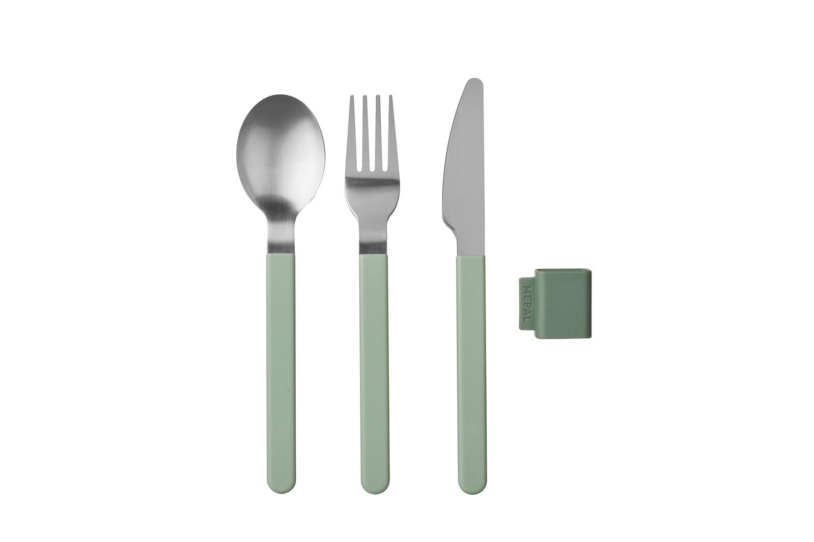 Das MEPAL Besteckset Silueta 3-teilig besteht aus den grundlegenden Essbesteckteilen Messer, Gabel und Löffel. Die Griffe sind aus Kunststoff gefertigt, während die funktionalen Teile aus robustem Edelstahl bestehen. Dieses Material sorgt für eine lange Haltbarkeit und eine einfache Reinigung.