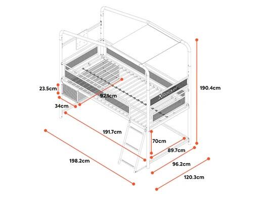X Rocker Midsleeper Contra Gaming-Bett mit TV-Halterung für Kinder & Jugendliche - schwarz