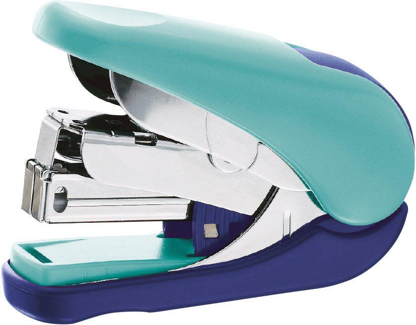 Die Flachheftungstechnologie gewährleistet eine ordentliche Heftung ohne unerwünschte Wölbungen. In der trendigen Farbe türkis-blau ist dieses Heftgerät nicht nur ein praktisches Hilfsmittel, sondern auch ein optisches Highlight.