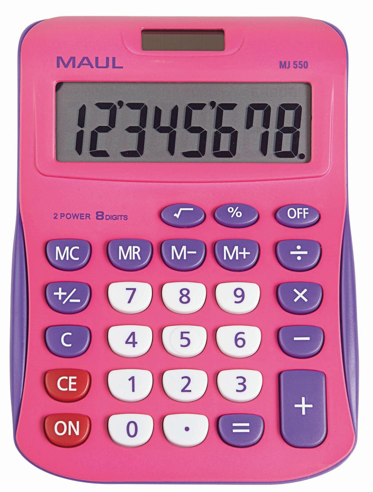 Der MAUL Tischrechner MJ550 in einem auffälligen pinken Farbton vereint Funktionalität mit einem modernen Design, das in jedem Büro oder auf jedem Schreibtisch zum Blickfang wird. Dieser Tischrechner ist ideal für alle, die Wert auf Präzision und Benutzerfreundlichkeit legen. Mit einem angewinkelten, großen Display sorgt der MJ550 für eine optimale Lesbarkeit der Ergebnisse, sodass Sie auch bei längeren Berechnungen nicht auf den Komfort verzichten müssen.
