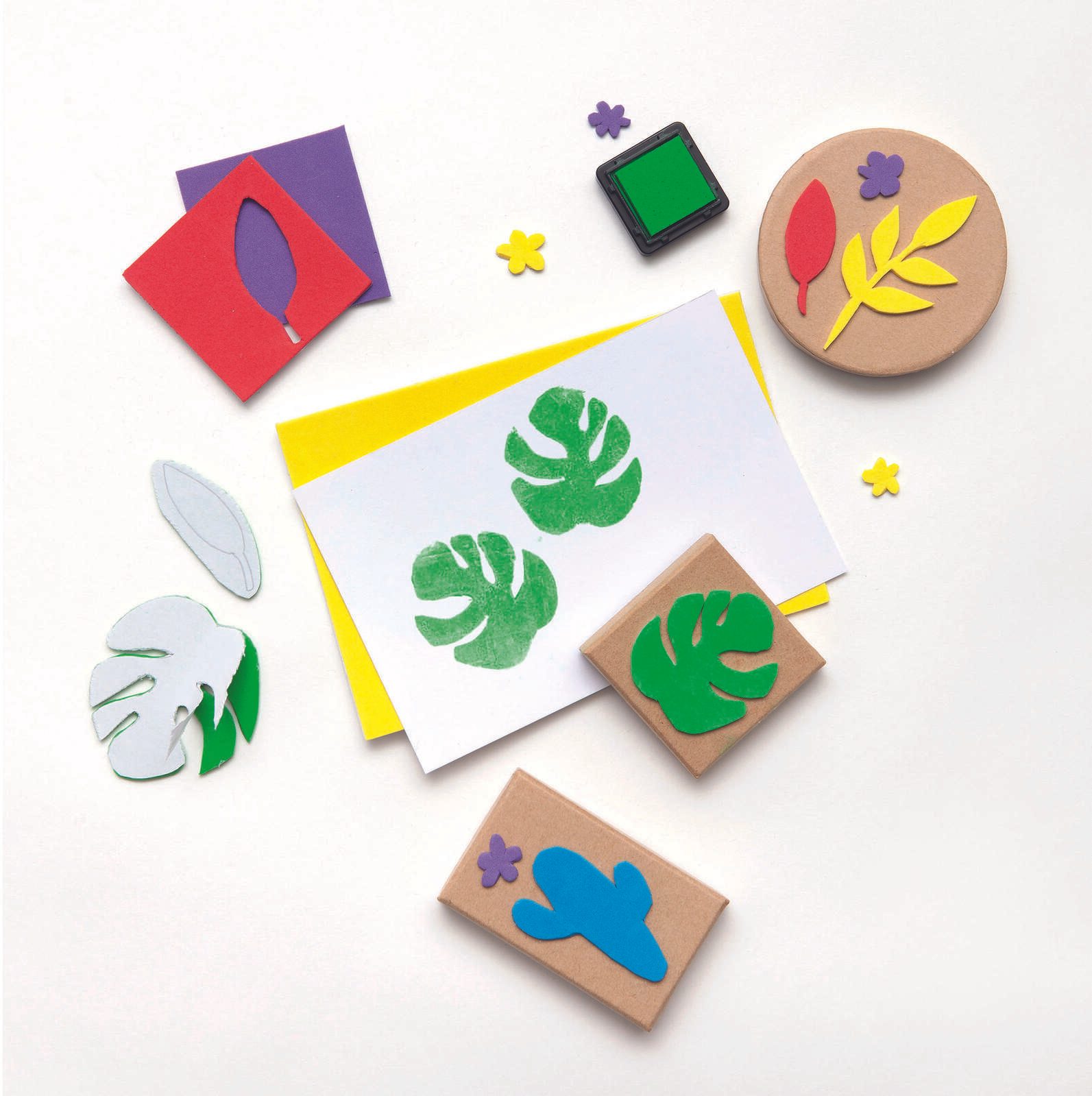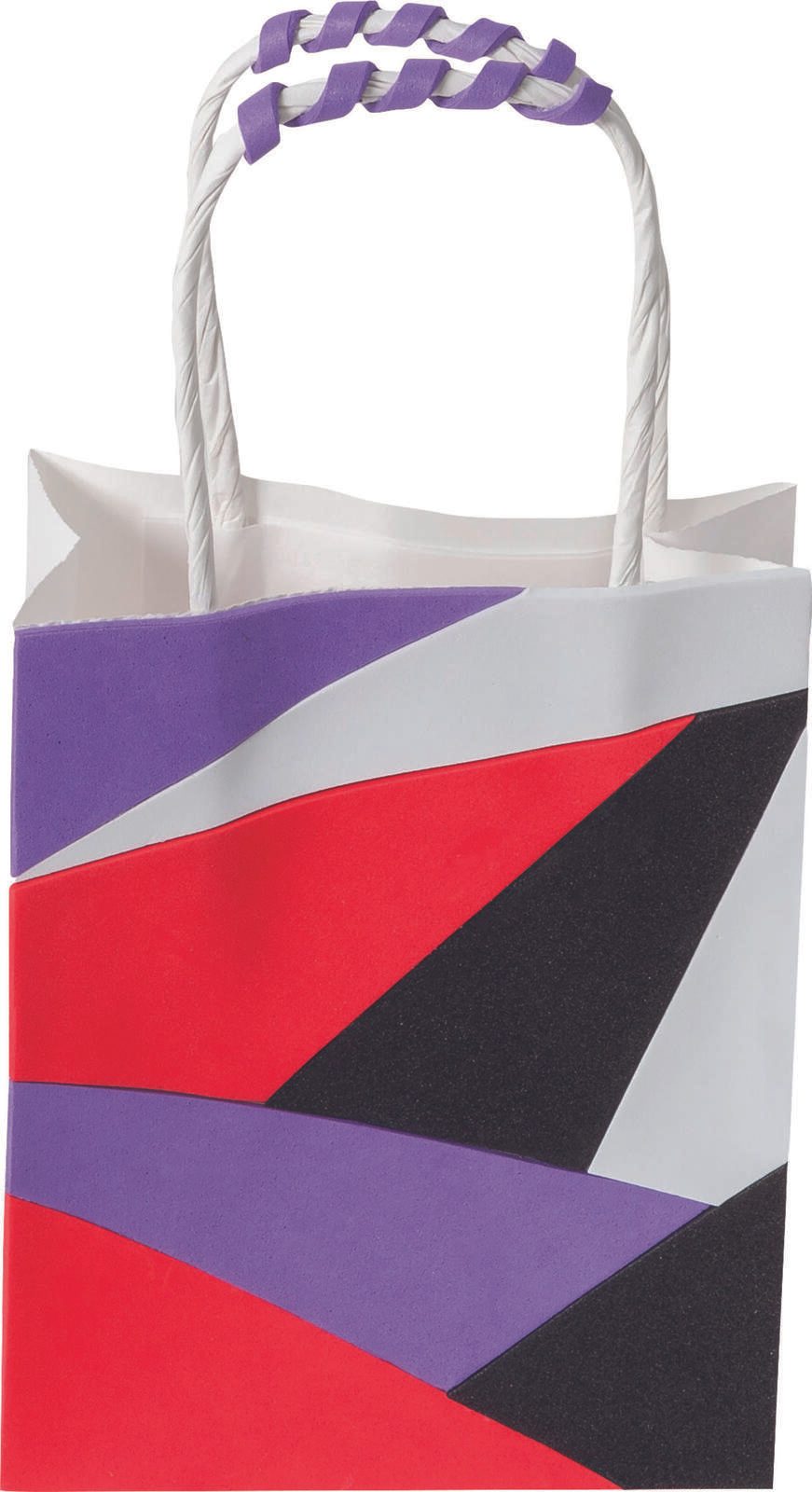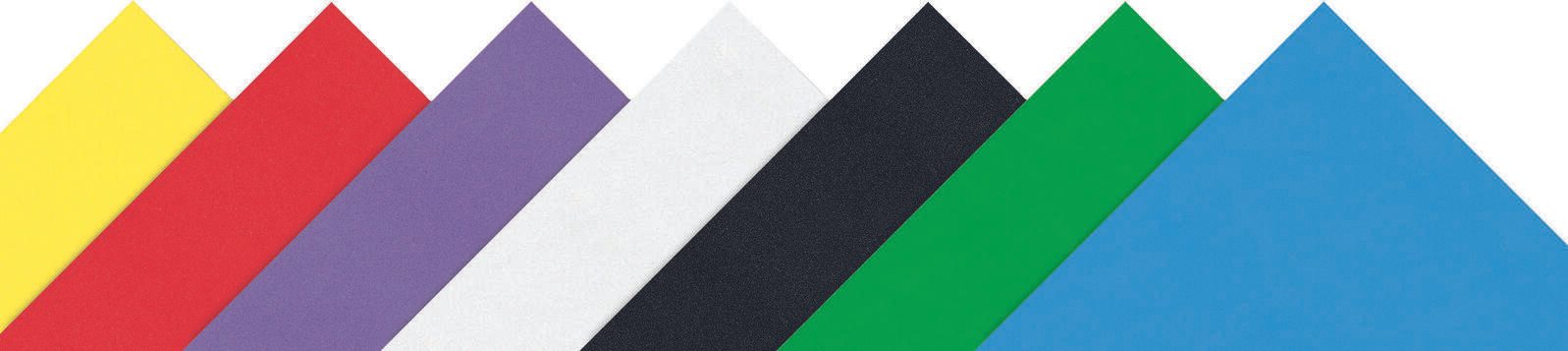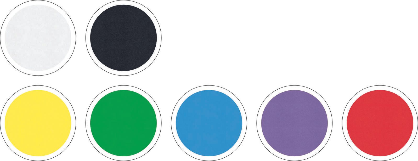 - Je 1 Blatt in Gelb, Rot, Violett, Weiß, Schwarz, Grün, Blau. Kein Kleber beim Basteln nötig, da selbstklebend.