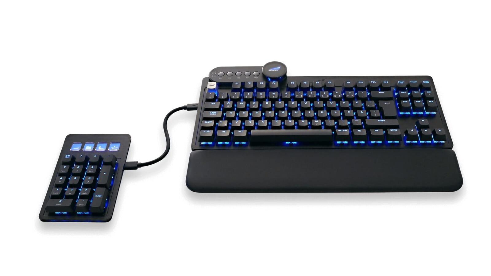 - Enthalten sind Numpad, Media Dock und Handballenauflage (Zubehör separaterhältlich)