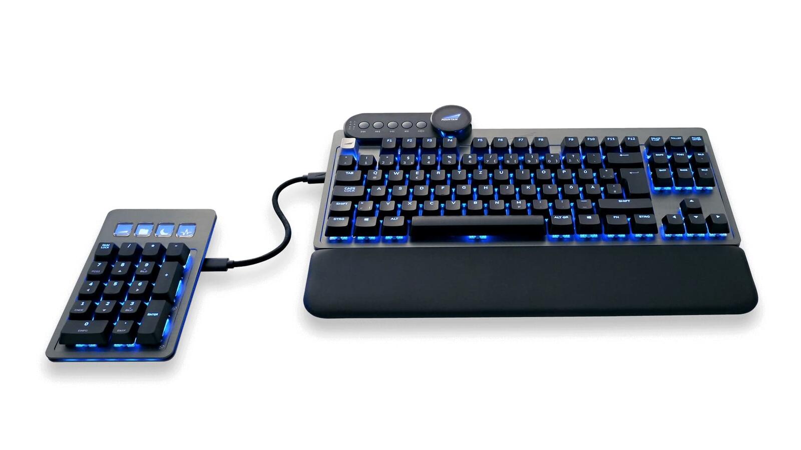 - Enthalten sind Numpad, Media Dock und Handballenauflage (Zubehör separaterhältlich)