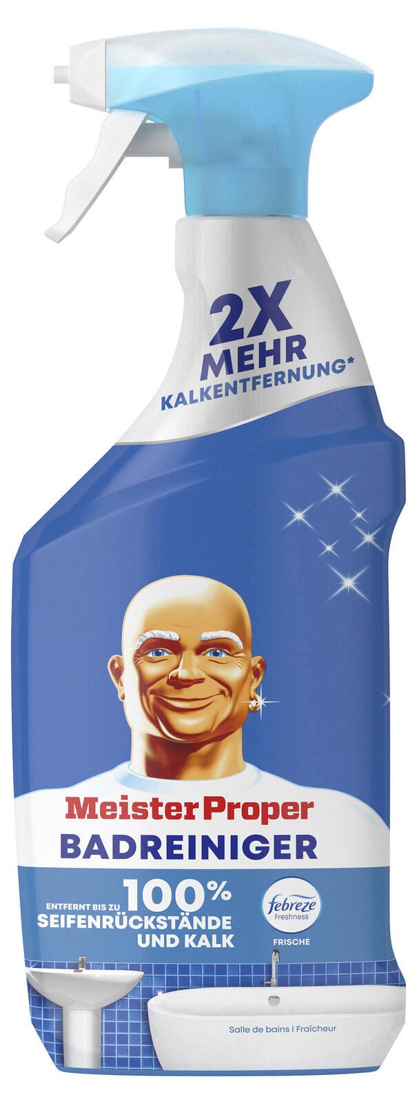 Der Mr. PROPER Badreiniger frisch in der praktischen Sprühflasche mit einem Inhalt von 0,80 l ist die ideale Lösung für die gründliche Reinigung von Küche und Bad. Mit seinem erfrischenden Duft sorgt dieser Badreiniger nicht nur für Sauberkeit, sondern auch für ein angenehmes Raumklima. Die spezielle Formel des Reinigers entfernt mühelos Kalkablagerungen und sorgt für strahlend saubere, säurefeste Oberflächen. Die Anwendung des Mr. PROPER Badreinigers ist unkompliziert und zeitsparend. Einfach die Sprühflasche schütteln, auf die zu reinigende Fläche sprühen und kurz einwirken lassen. Anschließend mit einem Tuch oder Schwamm abwischen und schon erstrahlen deine Fliesen, Waschbecken und Armaturen in neuem Glanz. Die leistungsstarke Reinigungskraft sorgt dafür, dass selbst hartnäckige Verschmutzungen und Kalkrückstände effektiv beseitigt werden. Ein weiterer Vorteil des Mr. PROPER Badreinigers ist seine Vielseitigkeit. Er eignet sich nicht nur für das Badezimmer, sondern auch für die Küche, wo er Fett und andere Verschmutzungen mühelos entfernt. Die praktische Sprühflasche ermöglicht eine gezielte Anwendung, sodass du auch schwer erreichbare Stellen problemlos reinigen kannst. Vertraue auf die Qualität von Mr. PROPER, einem renommierten Hersteller, der für effektive und zuverlässige Reinigungsprodukte bekannt ist. Der Badreiniger frisch ist nicht nur ein leistungsstarker Helfer im Haushalt, sondern auch eine angenehme Ergänzung für dein Reinigungssortiment, das für ein frisches und sauberes Zuhause sorgt.Technische Daten