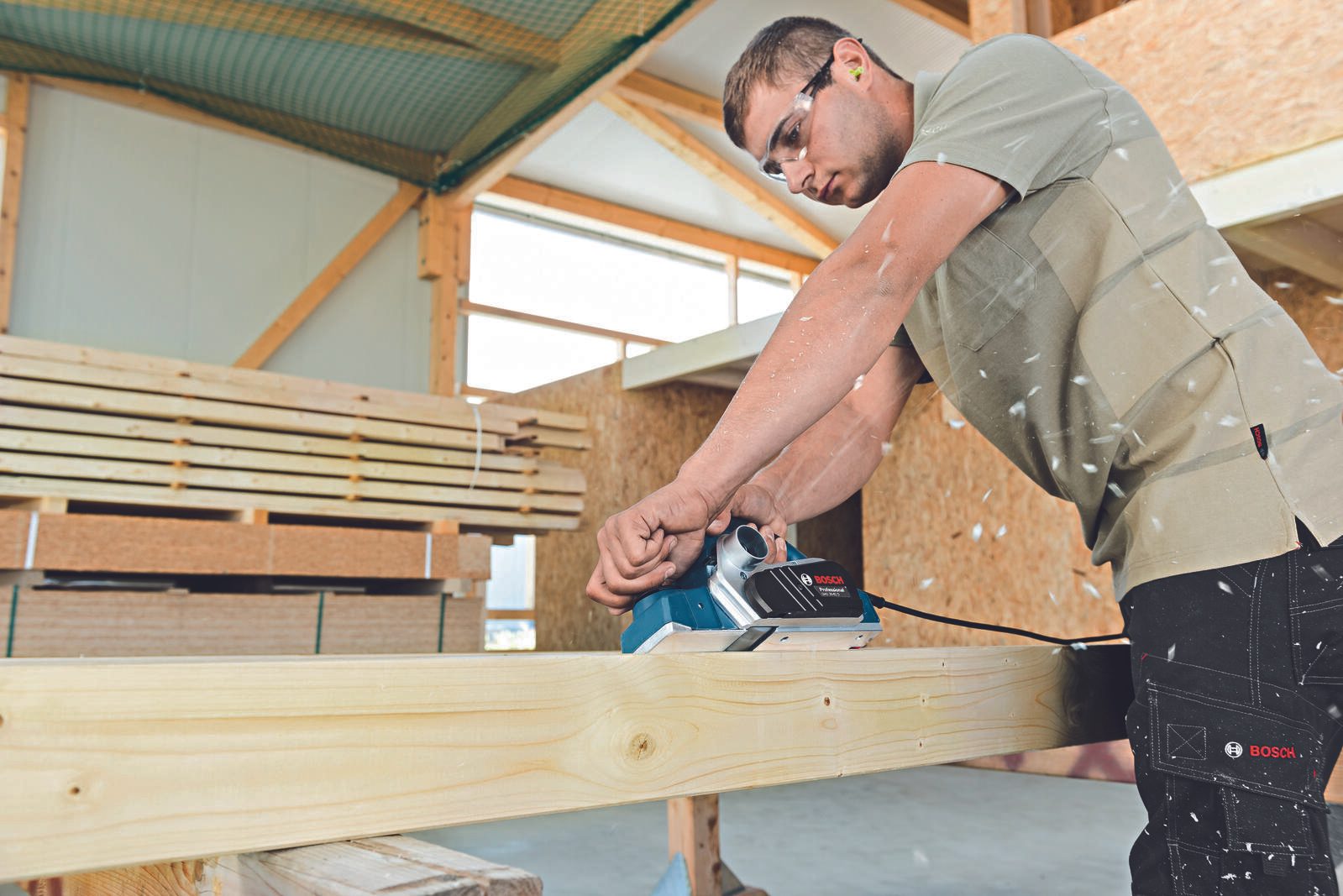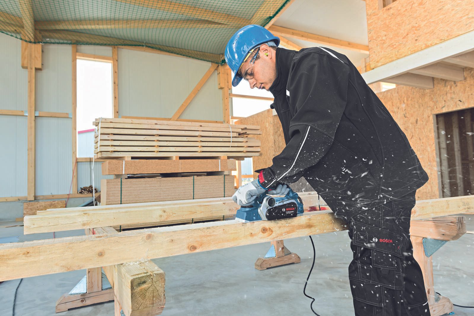 Der GHO 26-82 D ist im Netzbetrieb ausgelegt, was Ihnen eine konstante Leistung ohne Unterbrechungen garantiert. Das Gerät wird mit einem Handwerkerkoffer geliefert, der nicht nur den Hobel schützt, sondern auch das mitgelieferte Zubehör wie den Innensechskantschlüssel, den Parallelanschlag und den Stoffstaubbeutel sicher aufbewahrt. Die ansprechende Farbgestaltung in Blau und Schwarz verleiht dem Hobel zudem ein professionelles Aussehen.