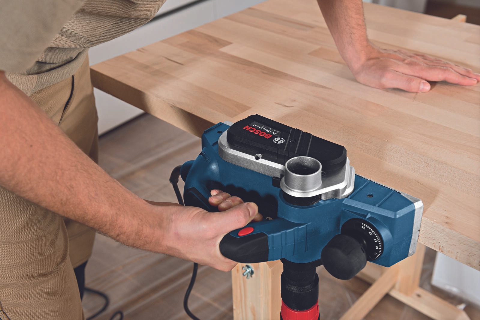 Mit einem Gewicht von nur 2,8 kg ist der Hobel handlich und lässt sich mühelos über verschiedene Materialien führen. Die ergonomische Bauform sorgt für eine angenehme Handhabung und reduziert die Ermüdung bei längeren Arbeiten. Darüber hinaus ist der Hobel mit einem Staubbeutel ausgestattet, der die Arbeitsumgebung sauber hält und die Sicht auf das Werkstück verbessert.