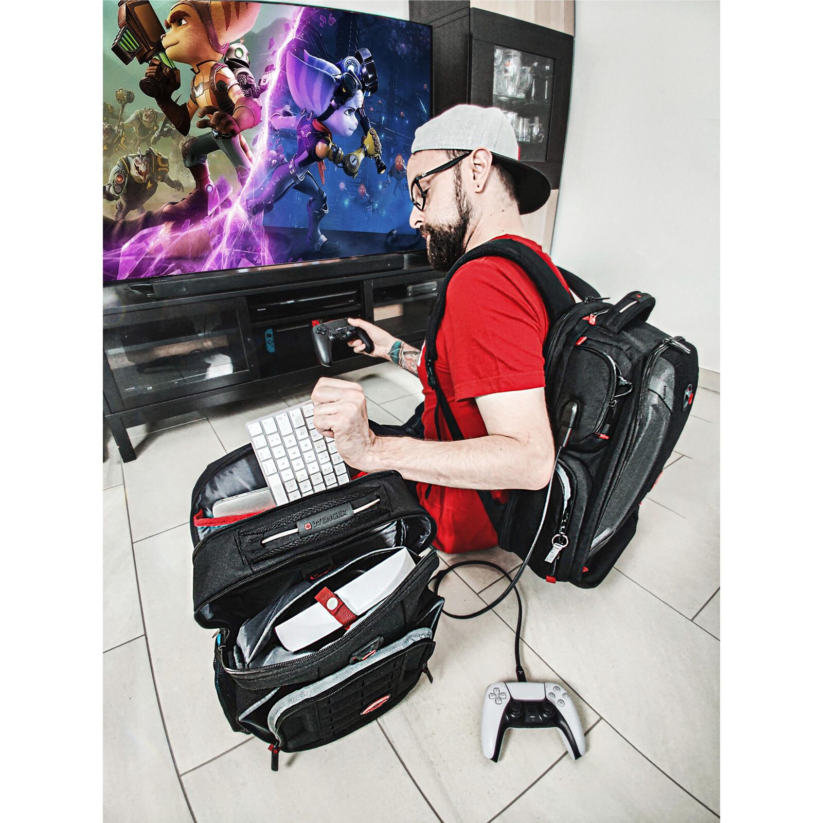 Der Wenger Laptop-Rucksack PlayerMode in elegantem Schwarz vereint Funktionalität und Stil auf perfekte Weise. Mit einem großzügigen Fassungsvermögen von 20,0 Litern bietet er ausreichend Platz für deinen Gaming-Laptop und weiteres Zubehör. Der Rucksack ist speziell für Notebooks bis zu einer Größe von 39,6 cm (15,6 Zoll) konzipiert, sodass du deine Technik sicher und bequem transportieren kannst. Die durchdachte Inneneinteilung umfasst ein gepolstertes Triple Protect Laptop-Fach, das deinen Laptop optimal schützt. Kühlende Netz-Seitenpanels sorgen für eine angenehme Belüftung, während ein separates Fach für dein Headset und zusätzliche Taschen für Tablet und weiteres Zubehör den Rucksack besonders praktisch machen. Die Fronttasche und Seitentaschen bieten schnellen Zugriff auf wichtige Gegenstände, sodass du alles griffbereit hast. Ein herausragendes Merkmal des Wenger Rucksacks ist der Anti-Diebstahl-Verschluss, der zusätzliche Sicherheit für deine Wertsachen gewährleistet. Die atmungsaktive Rückenpolsterung sorgt für hohen Tragekomfort, selbst bei längeren Reisen. Für noch mehr Flexibilität ist eine Trageschlaufe integriert, die eine Befestigung am Griff von Rollenkoffern ermöglicht. So wird das Reisen zu einem entspannten Erlebnis, besonders bei Gamer-Events, bei denen du deine persönlichen Patches mittels Klettverschluss anbringen kannst. Hergestellt aus strapazierfähigem Polyester, ist der Wenger Laptop-Rucksack nicht nur optisch ansprechend, sondern auch robust und langlebig. Die Außenmaße von 51,0 x 31,0 x 51,0 cm machen ihn zu einem idealen Begleiter für Schule, Studium oder Freizeit. Mit dem Wenger Laptop-Rucksack PlayerMode bist du bestens gerüstet, um deinen Gaming-Laptop und Zubehör stilvoll und sicher zu transportieren.Technische Daten