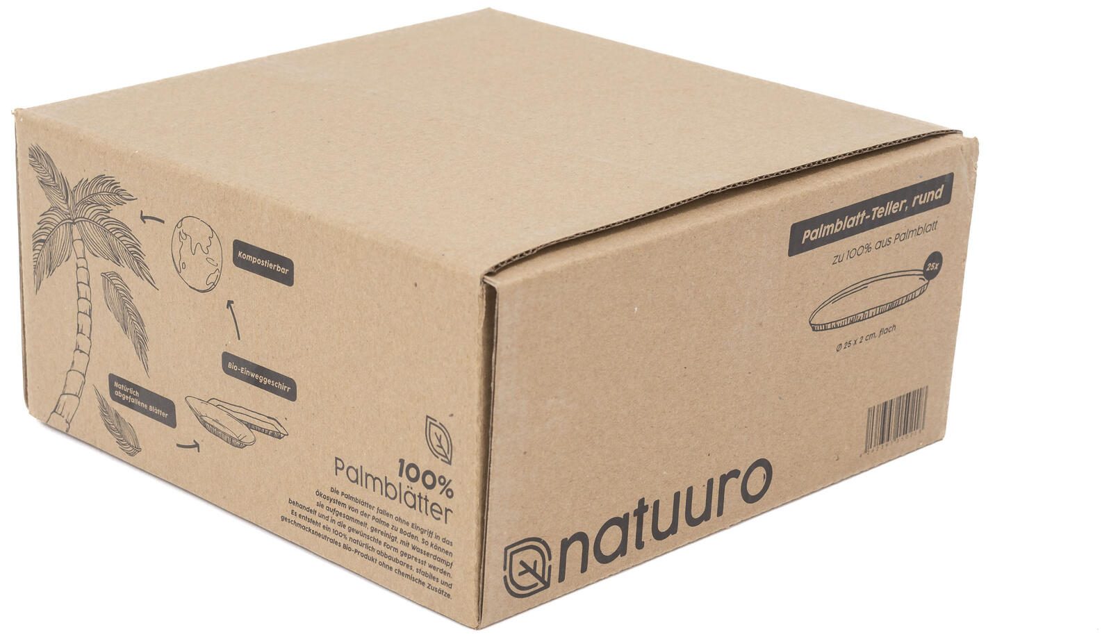Ein weiterer Vorteil des natuuro® Palmblatt-Tellers ist die praktische Handhabung. Da es sich um Einwegteller handelt, entfällt das lästige Abwaschen nach dem Essen. Stattdessen kannst du dich auf das Wesentliche konzentrieren – das Genießen der Zeit mit deinen Gästen. Die Lieferung erfolgt in praktischen Packungen zu je 25 Stück, sodass du immer ausreichend Vorrat für deine Veranstaltungen hast.