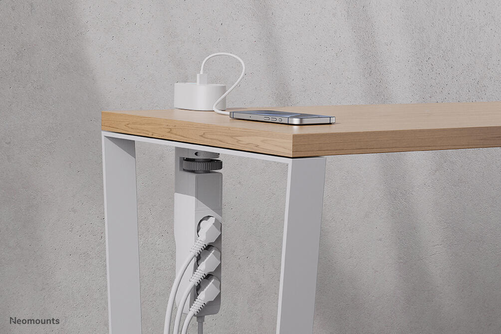 Neomounts DS22-840WH6 Tischsteckdose (1,4m) mit Klemme, USB-C + USB-A, Schnellladung, weiß