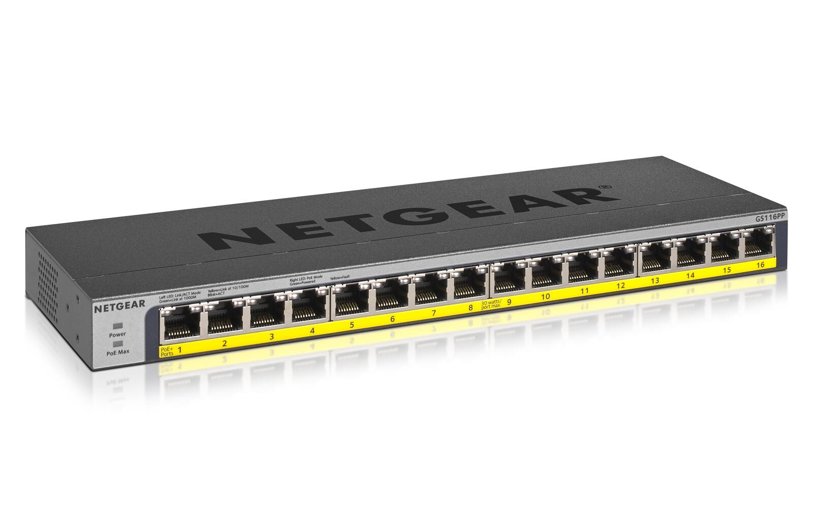 Netgear GS116PP 16-Port Gigabit PoE+ 183W Unmanaged Switch