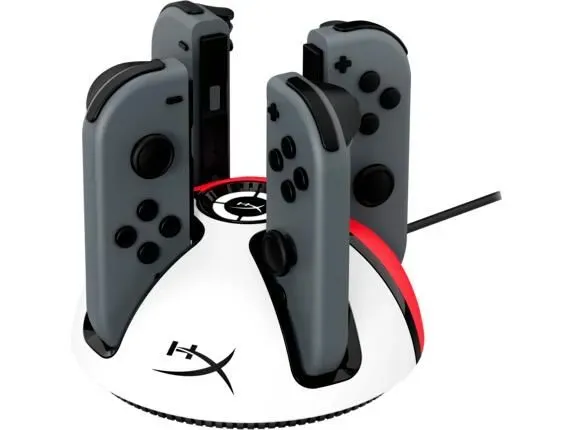 1. Die Ladestation ChargePlay Quad 2 von HyperX kann vier Joycons gleichzeitig aufladen - was praktisch zwei Controllern bei PlayStation und Xbox entspricht. Es dauert etwas mehr als drei Stunden, bis alle Controller aufgeladen sind. Ein hohes Gewicht und sicheres Einrasten beugt auch bei diesem HyperX-Produkt etwaigen Unfällen vor - und viel Platz nimmt die Station durch die vertikal angeordneten Joycons ebenfalls nicht weg.