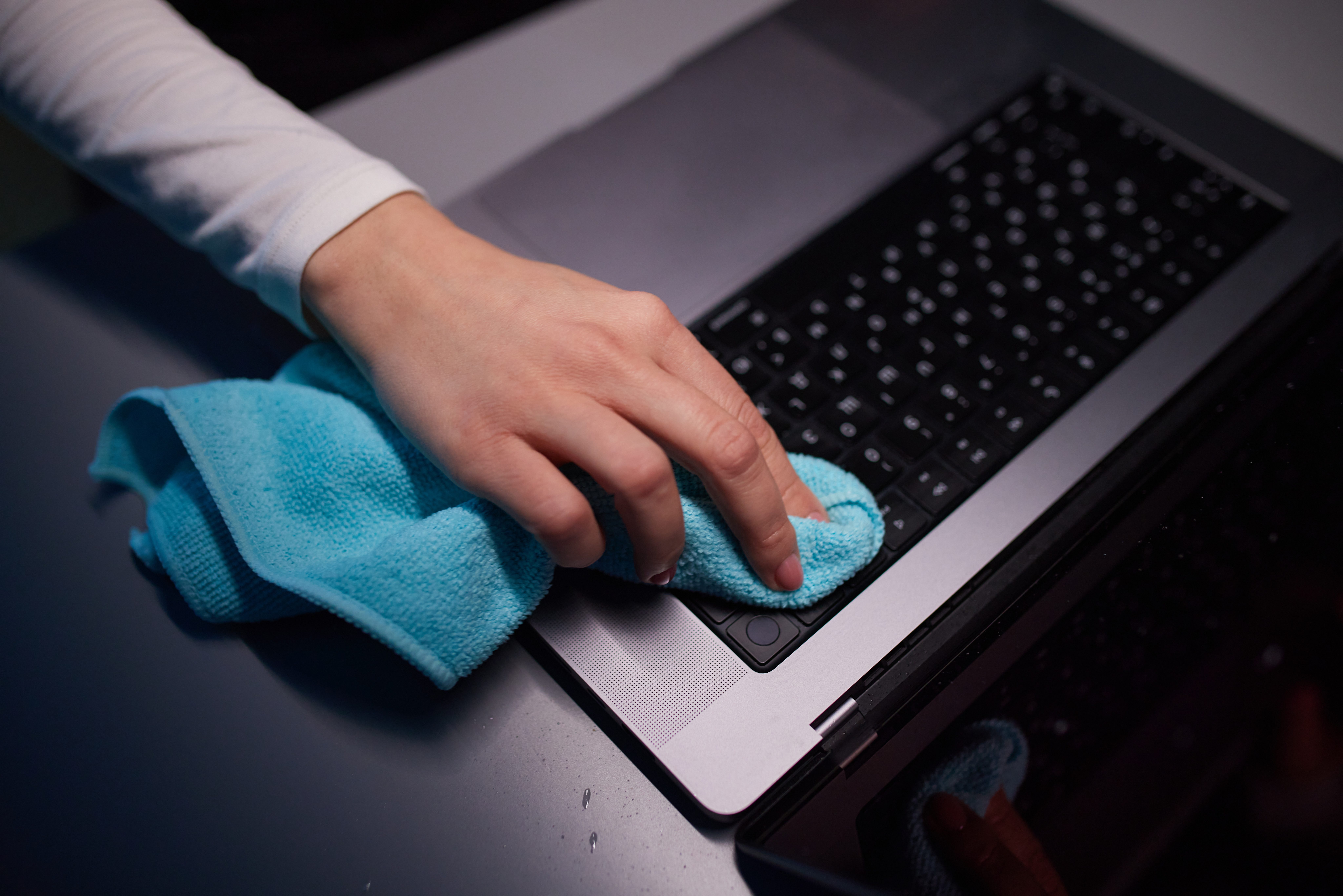 2. Mit einem feuchten Tuch wischst du danach die Tasten ab - Mikrofaser eignet sich am besten. Das Tuch sollte nur leicht angefeuchtet sein - nicht nass, denn wir wollen keine Feuchtigkeit in der Tastatur.