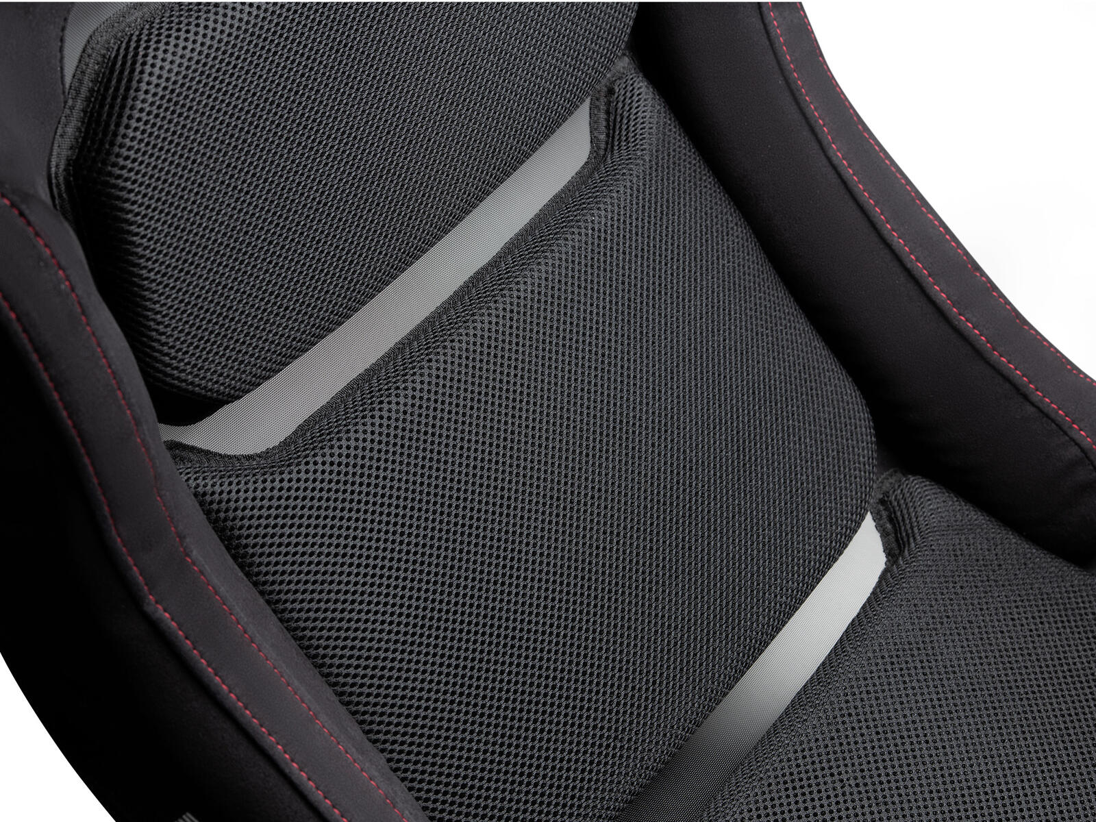 - Echte Formel-Sitzergonomie mit zusätzlicher Unterstützung in wichtigen Bereichen und atmungsaktivem Stoff für lange Rennsessions