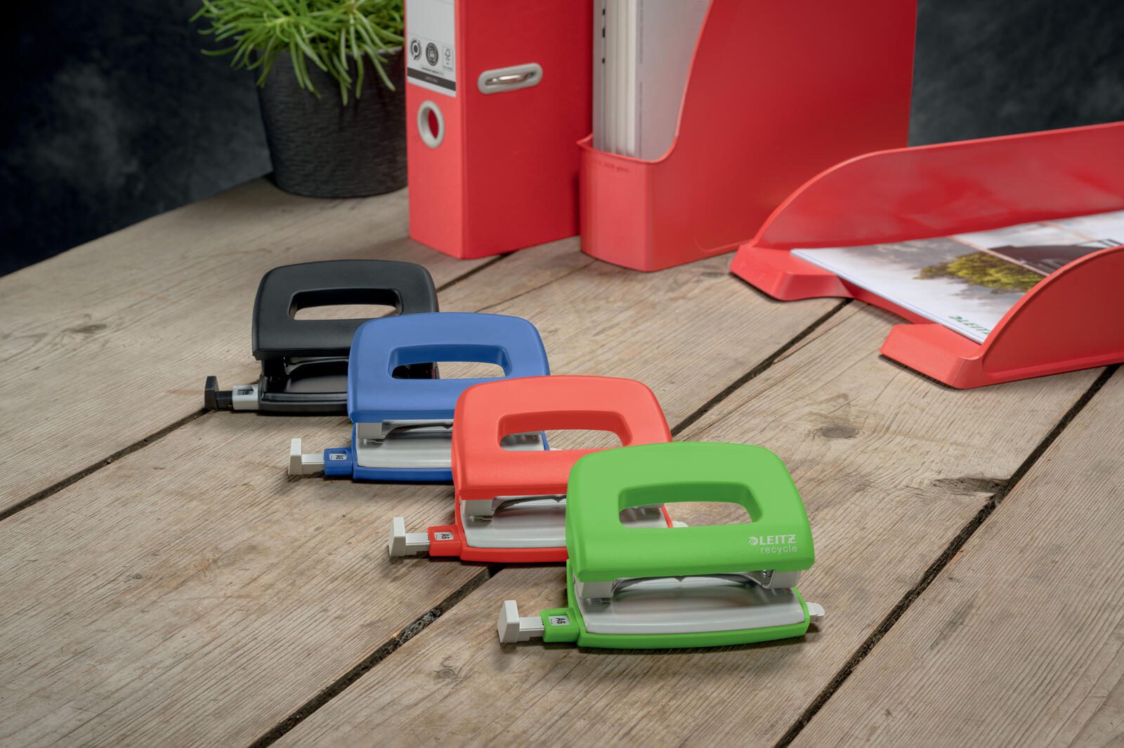 Der LEITZ Locher NeXXt in einem ansprechenden Rot ist der ideale Begleiter für dein Büro und sorgt für eine effektive Organisation deiner Dokumente. Mit seinem modernen und funktionalen Design ist dieser Bürolocher nicht nur ein praktisches Werkzeug, sondern auch ein stilvolles Accessoire, das Farbe in deinen Arbeitsbereich bringt. Dieser Locher zeichnet sich durch seine runde Lochform aus, die eine saubere und präzise Verarbeitung garantiert. Er ist für Papierformate von A4, A5, A6, Folio 888 und US-Quart geeignet, was ihn äußerst vielseitig macht. Egal, ob du wichtige Unterlagen, Präsentationen oder persönliche Dokumente lochst, der LEITZ Locher NeXXt erfüllt deine Anforderungen mühelos. Die integrierte Anschlagschiene sorgt dafür, dass du deine Blätter jederzeit genau positionieren kannst, was die Effizienz beim Lochen erhöht. Mit einem stabilen und robusten Gehäuse bietet der Locher eine hohe Langlebigkeit, während die ergonomische Gestaltung eine einfache Handhabung ermöglicht. Das auffällige Rot des Lochers zieht nicht nur die Blicke auf sich, sondern sorgt auch für einen frischen Akzent auf deinem Schreibtisch. Die Kombination aus Funktionalität und ansprechendem Design macht den LEITZ Locher NeXXt zu einer hervorragenden Wahl für alle, die Wert auf Qualität und Stil legen. Vertraue auf die bewährte Qualität von LEITZ, einem renommierten Hersteller, der für seine innovativen Büroprodukte bekannt ist. Der Locher NeXXt ist nicht nur ein Werkzeug, sondern ein unverzichtbarer Helfer für die tägliche Büroarbeit, der dir hilft, deine Dokumente ordentlich und übersichtlich zu halten.Technische Daten