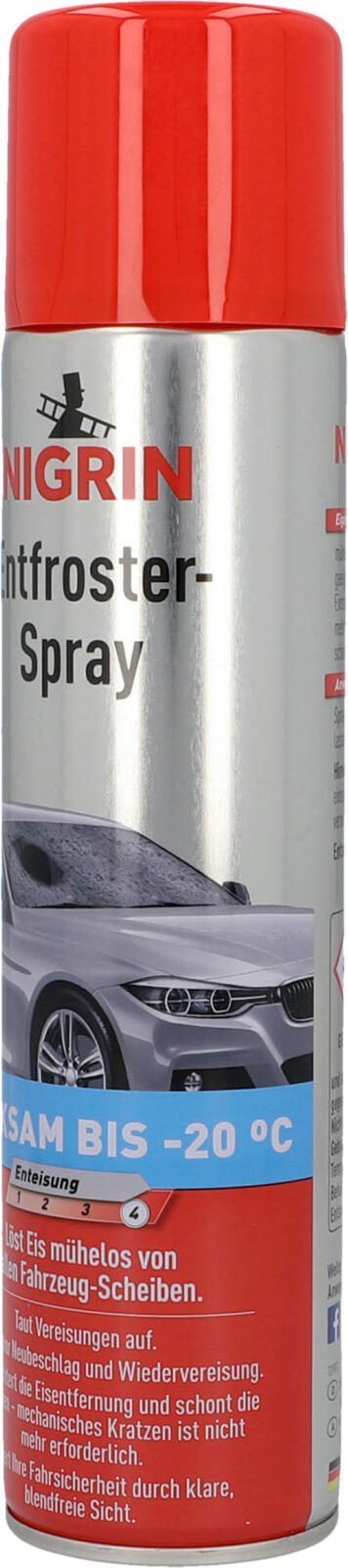 Das NIGRIN Enteiser Nigrin Entfrosterspray in der praktischen Sprühdose mit einem Inhalt von 400,0 ml ist die ideale Lösung, um Frost von deiner Autoscheibe zu entfernen.