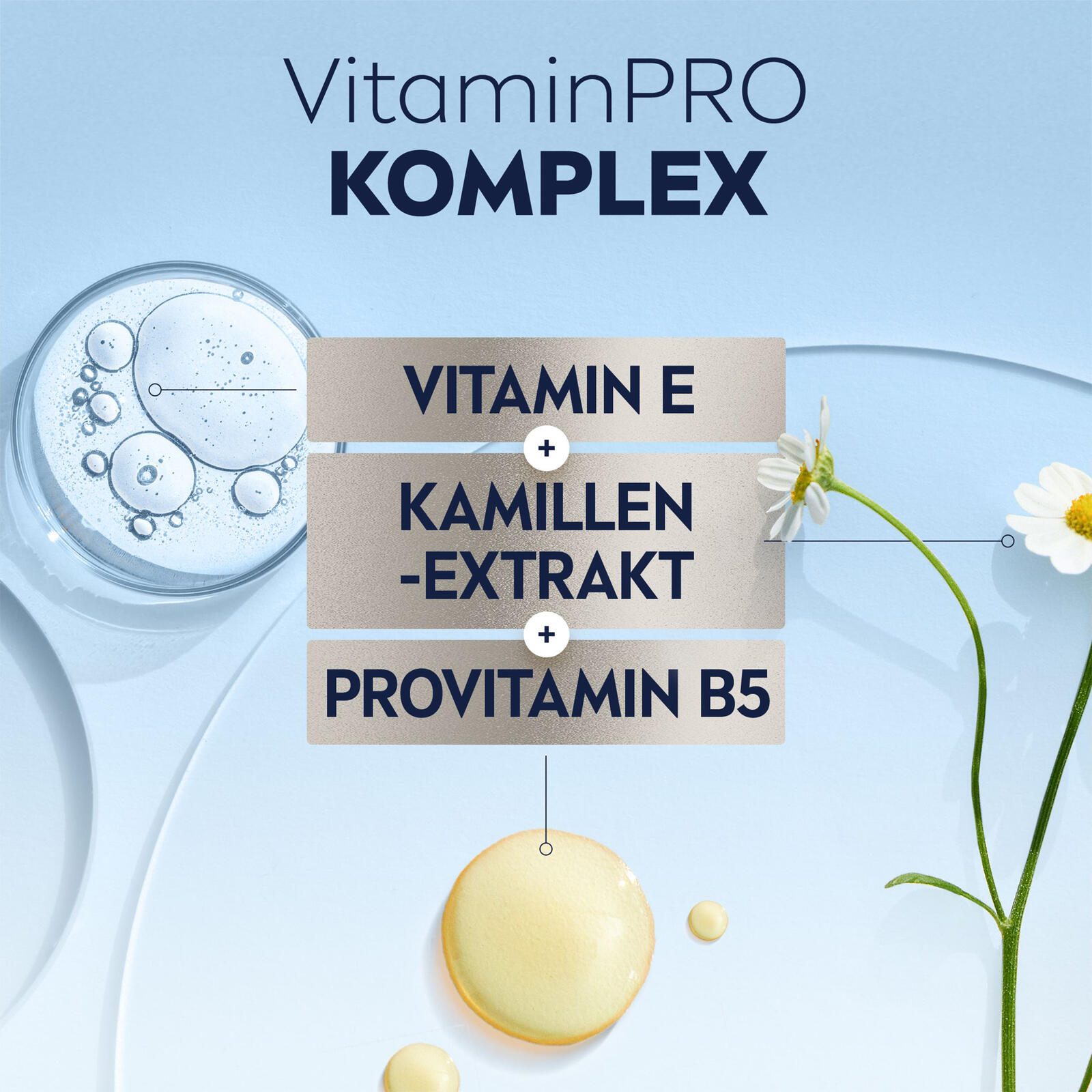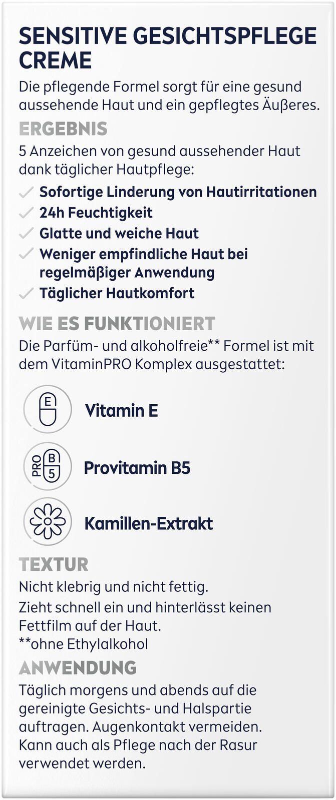 • 24h Feuchtigkeitspflege, dermatologisch bestätigt, feuchtigkeitsspendend, mit Kamille, mit Vitamin B5, mit Vitamin E, ohne Alkohol, ohne Mikroplastik, ohne Parfüm, recycelbare Verpackung, vegan