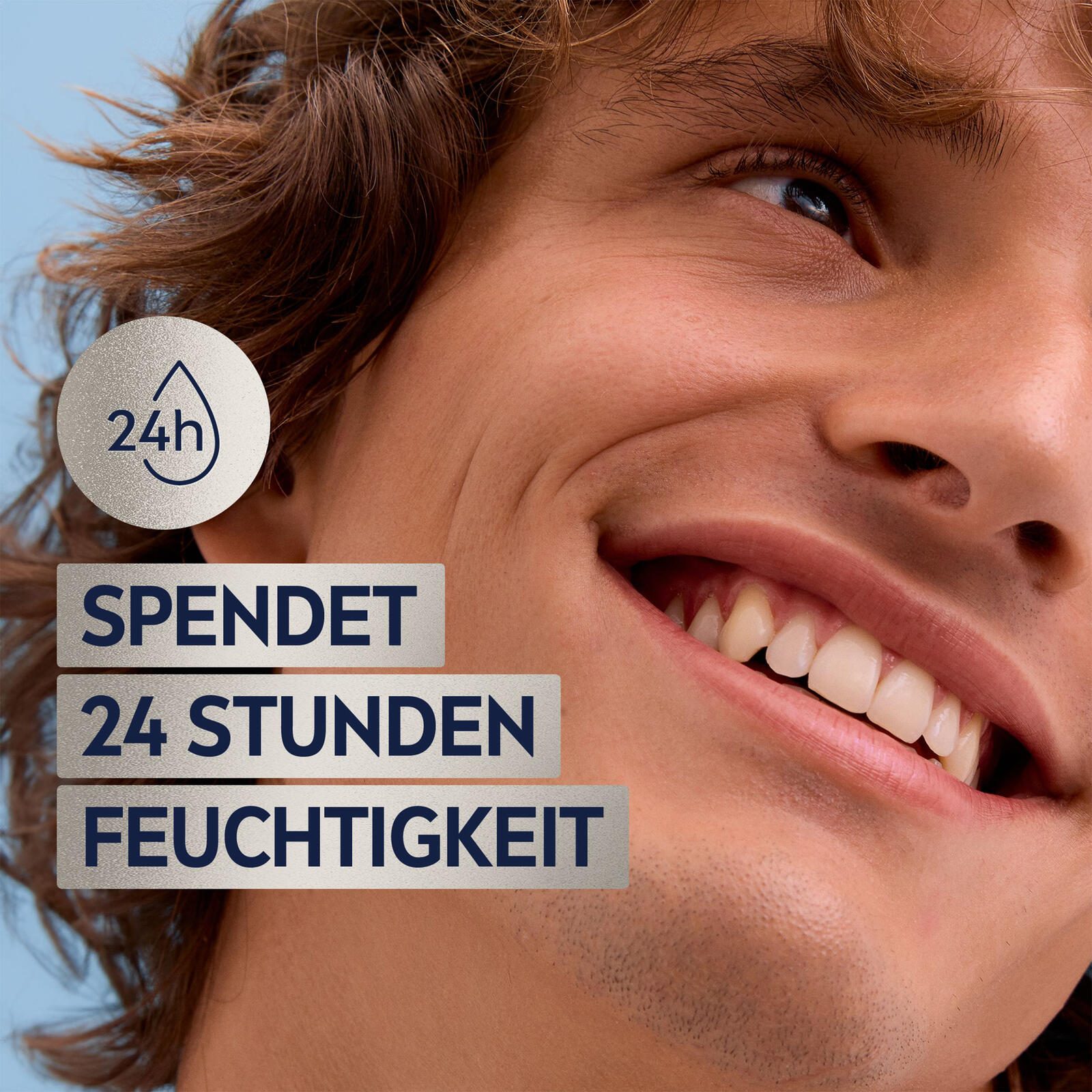 Die NIVEA MEN SENSITIVE 24H FEUCHTIGKEIT GESICHTSPFLEGE ist speziell für die empfindliche Männerhaut entwickelt worden und bietet eine intensive 24-Stunden-Feuchtigkeitspflege. Die dermatologisch bestätigte Formel wirkt sofort lindernd bei Hautirritationen und sorgt für ein angenehmes Hautgefühl den ganzen Tag über. Mit wertvollen Inhaltsstoffen wie Kamille, Vitamin B5 und Vitamin E unterstützt sie die Hautregeneration und stärkt die natürliche Schutzbarriere.
