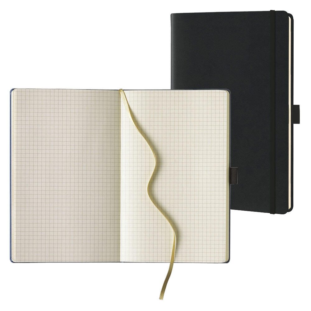 Lediberg Notizbuch Notizbuch 13x21cm kar. schwarz