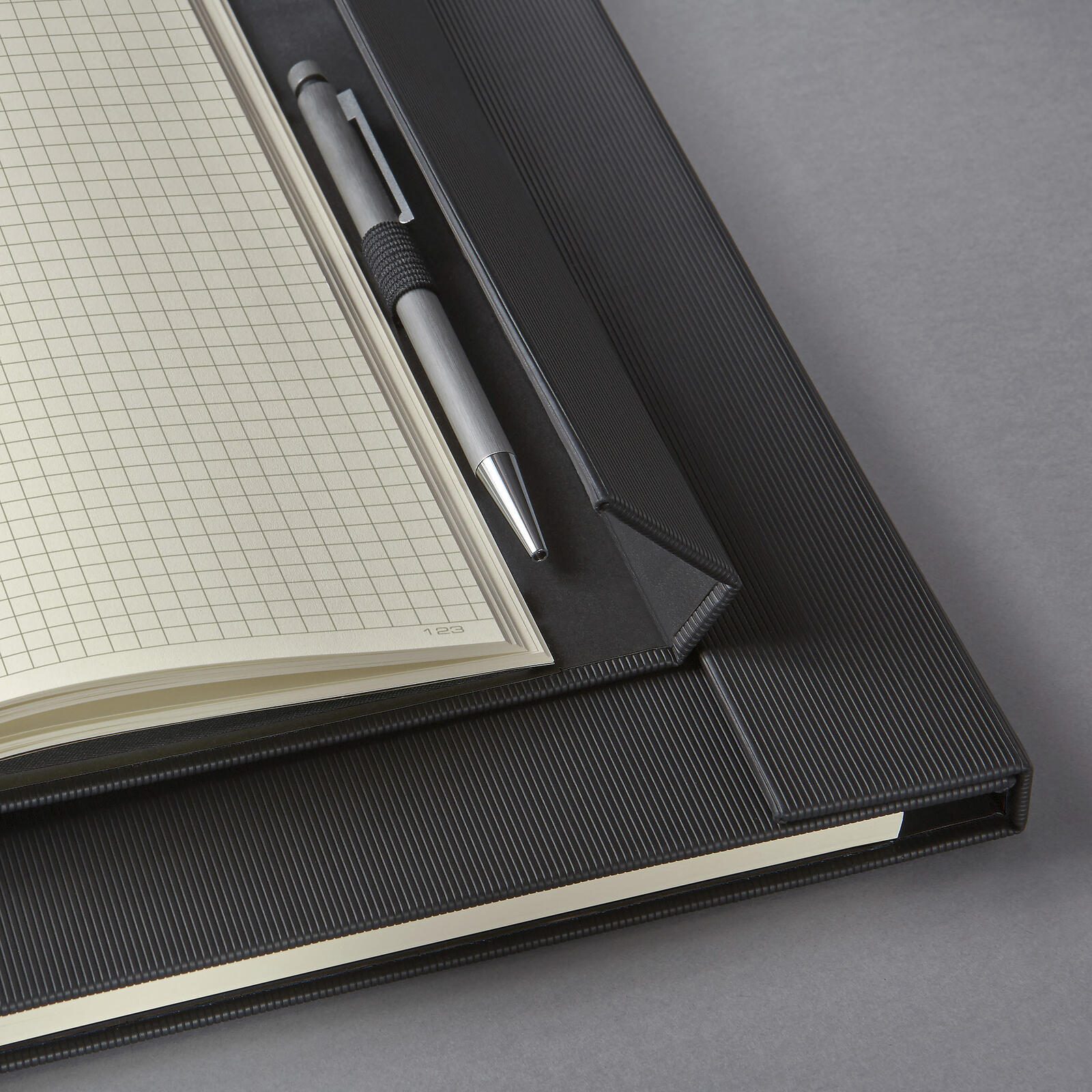 Das Notizbuch hat das Format ca. DIN A4 und besteht aus hochwertigem Kunststoff, was eine langlebige Nutzung garantiert. Die Lineatur ist kariert, perfekt für Skizzen, Tabellen oder einfach nur zum Schreiben. Das creme-farbene Papier sorgt für eine angenehme Schreiberfahrung und verleiht deinen Notizen eine elegante Note.