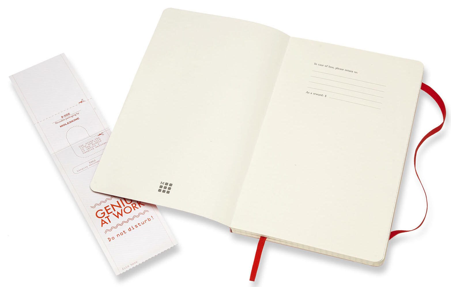 Dieses hochwertige MOLESKINE Notizbuch in scharlachrot ist ein Must-Have für alle, die ihre Gedanken stilvoll festhalten möchten. Mit einem flexiblen Einband und einem praktischen Gummizug-Verschluss ist es der ideale Begleiter für unterwegs.