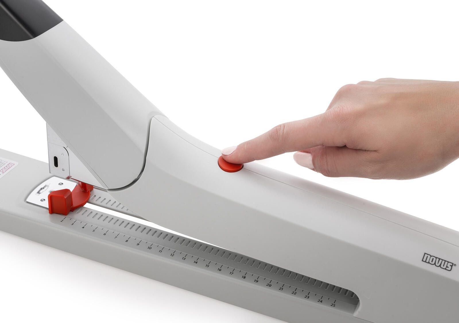 Das moderne Design in hellgrau-schwarz fügt sich harmonisch in jede Büroumgebung ein und verleiht deinem Arbeitsplatz einen professionellen Look. Mit dem novus Heftgerät B56XL erhältst du nicht nur ein praktisches Werkzeug, sondern auch ein stilvolles Accessoire, das deine Produktivität steigert und deine Dokumente sicher zusammenhält.