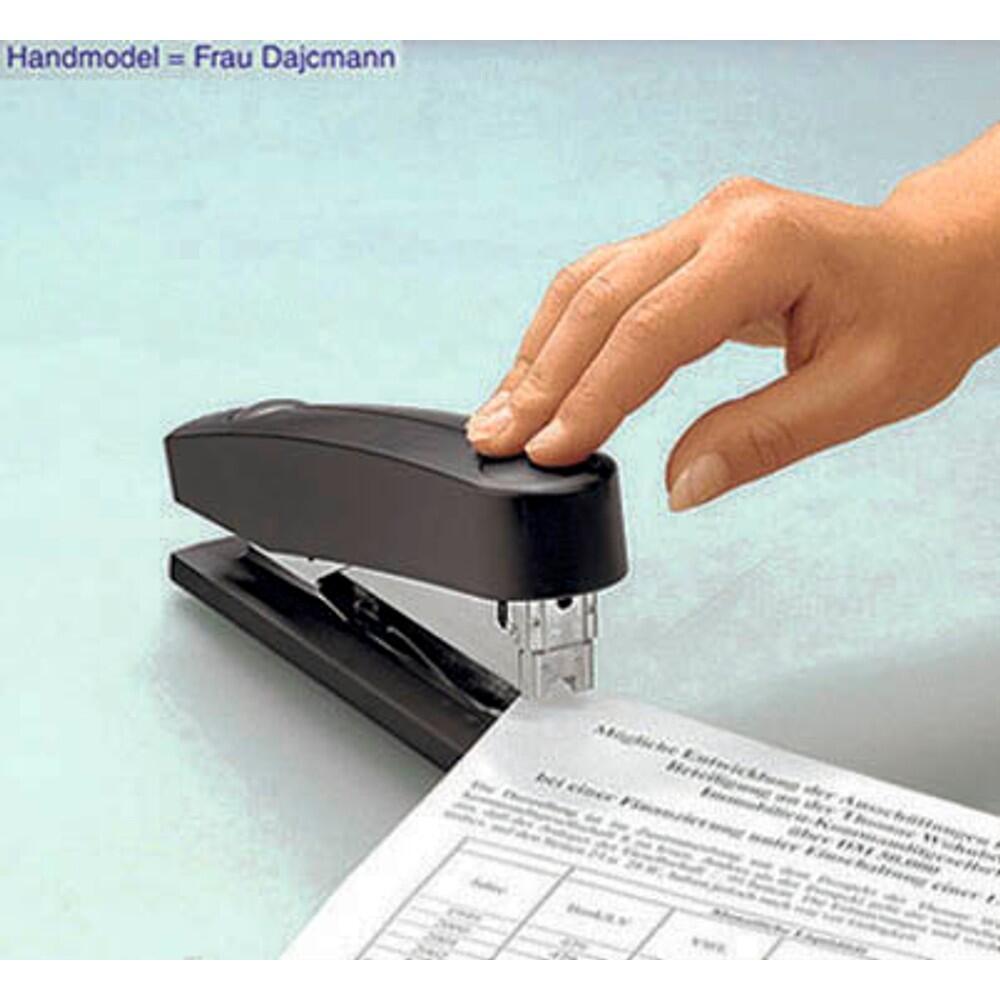 Das Heftgerät besteht aus hochwertigem Kunststoff und Metall, was nicht nur für Langlebigkeit sorgt, sondern auch einen modernen Look verleiht. Mit einem Gewicht von 550 g ist es handlich und dennoch stabil genug, um auch größere Aufgaben zu bewältigen. Die Einfügetiefe von 105 mm ermöglicht eine einfache Handhabung und das Nachladen der Klammern erfolgt unkompliziert von der Vorderseite. Im Lieferumfang sind bereits 200 Klammern (24/6) enthalten, sodass du sofort loslegen kannst.