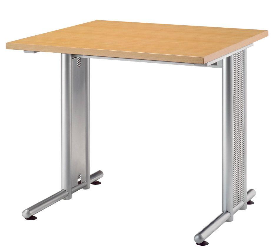 Das Gestell des Schreibtisches besteht aus hochwertigem Stahl in einem modernen Silberton, das nicht nur für eine hohe Stabilität sorgt, sondern auch optisch ansprechend ist. Die C-Fuß-Konstruktion bietet zusätzlichen Platz für Ihre Beine und sorgt für eine bequeme Nutzung, während die kompakten Maße von 80 cm x 80 cm x 72 cm eine optimale Nutzung des verfügbaren Raums ermöglichen.
