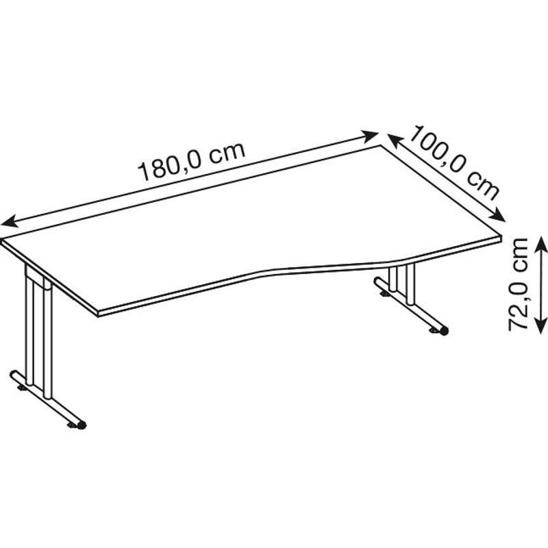 Der HAMMERBACHER Schreibtisch VNS18/N/S in ansprechendem Nussbaum-Design vereint Funktionalität und Ästhetik in einem modernen Arbeitsplatz. Die Tischplatte besteht aus robuster Spanplatte, die nicht nur eine ansprechende Optik bietet, sondern auch für Stabilität und Langlebigkeit sorgt. Das C-Fuß-Gestell aus hochwertigem Stahl in eleganter Silberfarbe verleiht dem Schreibtisch eine zeitgemäße Note und sorgt gleichzeitig für eine sichere Standfestigkeit. Mit einer Höhe von 72 cm ist dieser Schreibtisch optimal für eine ergonomische Arbeitsweise geeignet. Die trapezförmige Form des Modells NS18 ermöglicht es Ihnen, den Raum effizient zu nutzen, während die klare Linienführung und die edle Farbgebung in Nussbaum eine harmonische Atmosphäre schaffen. Ob im Homeoffice oder im Büro, der HAMMERBACHER Schreibtisch bietet ausreichend Platz für Ihren Laptop, Bücher und weitere Arbeitsmaterialien. Die schlichte Eleganz und das durchdachte Design machen ihn zu einem idealen Möbelstück für kreative Köpfe und berufstätige Menschen, die Wert auf eine stilvolle Arbeitsumgebung legen. Ohne zusätzliche Schubladen oder Fächer bleibt der Schreibtisch übersichtlich und ermöglicht Ihnen, sich auf das Wesentliche zu konzentrieren. Die Kombination aus funktionalen Materialien und einem modernen Look macht diesen Schreibtisch zu einer hervorragenden Wahl für alle, die einen praktischen und zugleich ästhetischen Arbeitsplatz suchen.