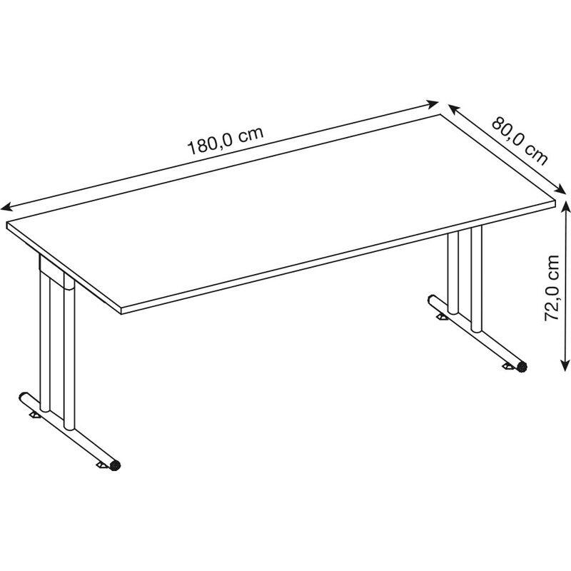 Die Maße von 180 cm in der Breite, 80 cm in der Tiefe und 72 cm in der Höhe machen den Schreibtisch zu einem geräumigen Arbeitsplatz, der genügend Platz für Computer, Schreibmaterialien und persönliche Gegenstände bietet. Die rechteckige Form sorgt für eine optimale Nutzung des verfügbaren Raums und ermöglicht eine flexible Anordnung in verschiedenen Raumkonfigurationen.